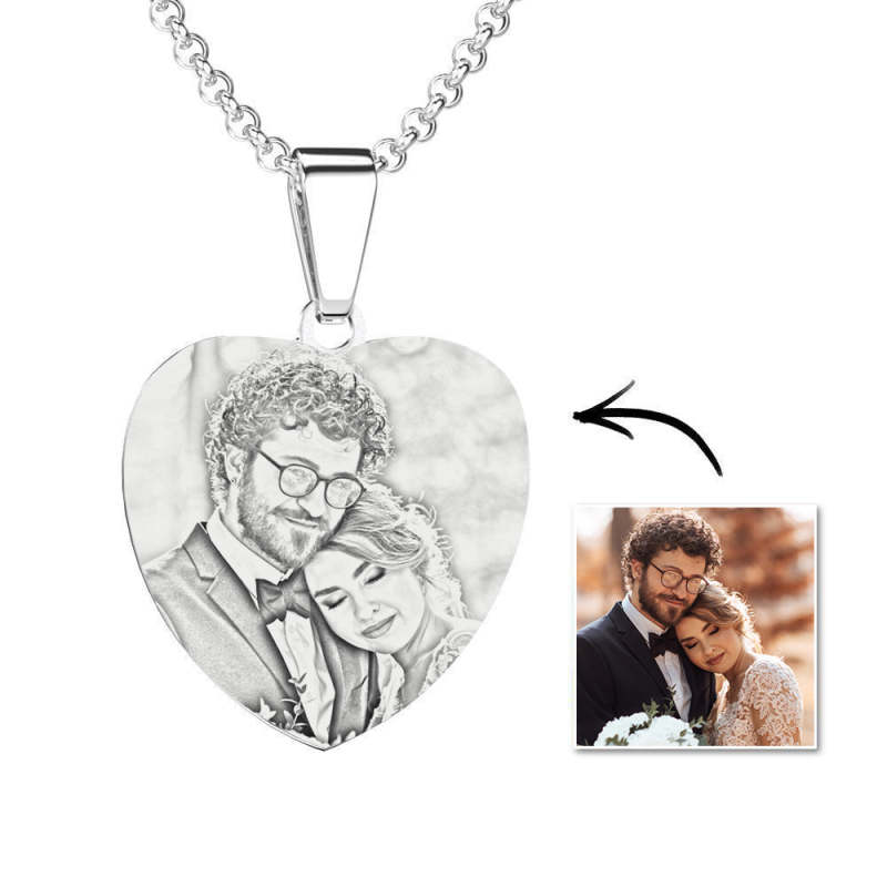 Heart Photo Engraved Tag Necklace With Engraving Stainless Steel Wedding Gift For Wife