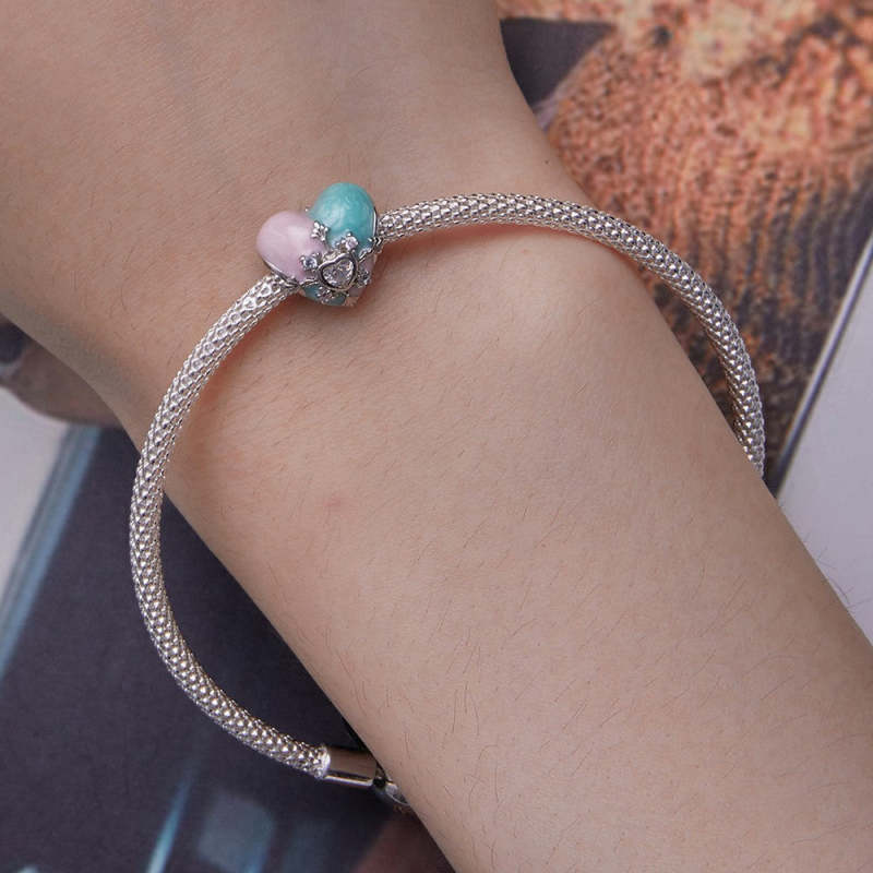 Heart Shaped Easter Colorful Charm Silver For Easter