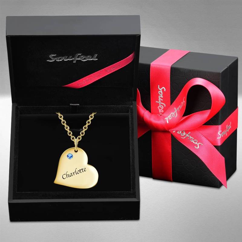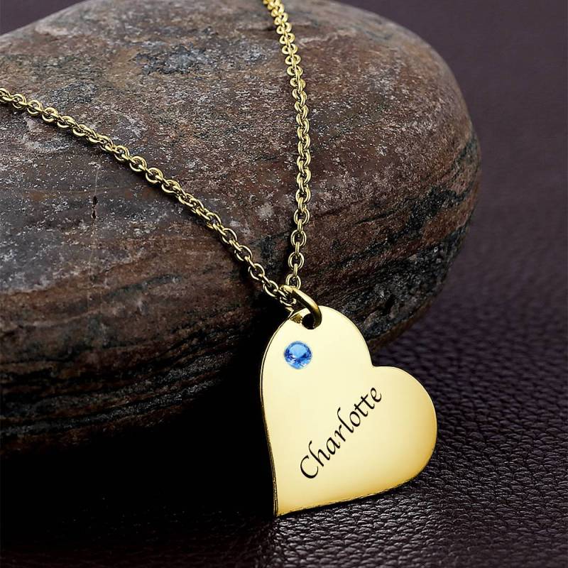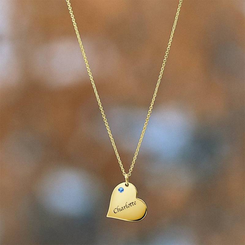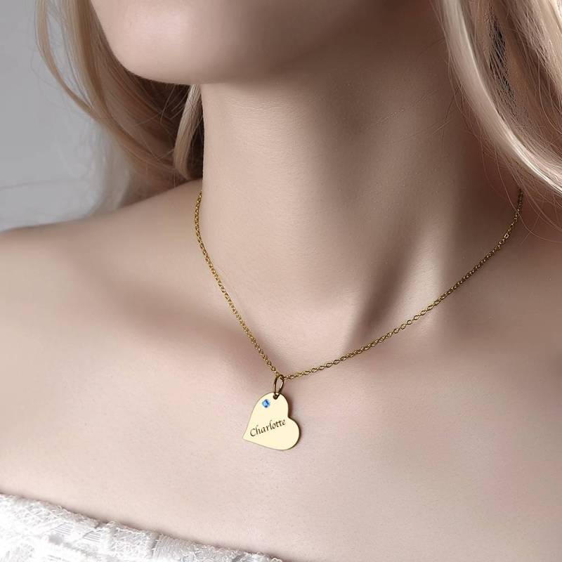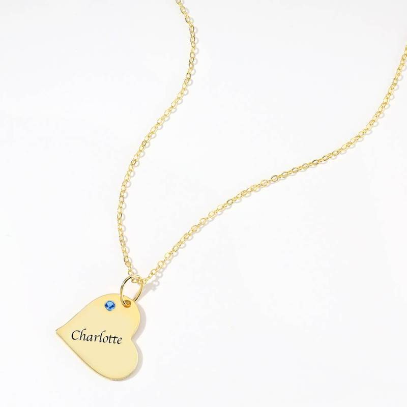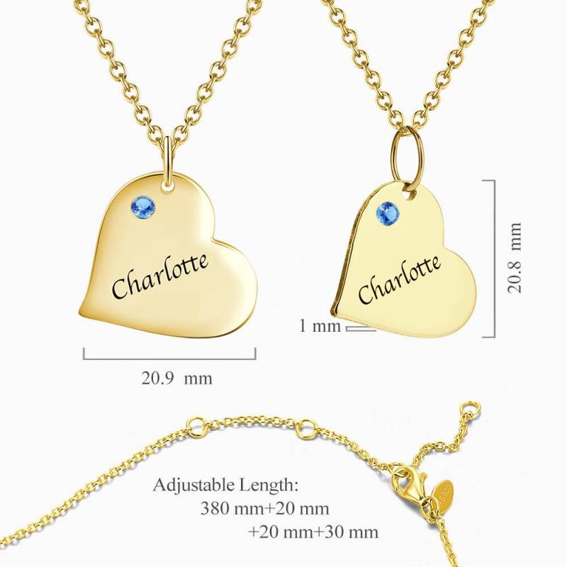 Heart Tag Personalized Birthstone Necklace With Engraving 14k Gold Plated Silver
