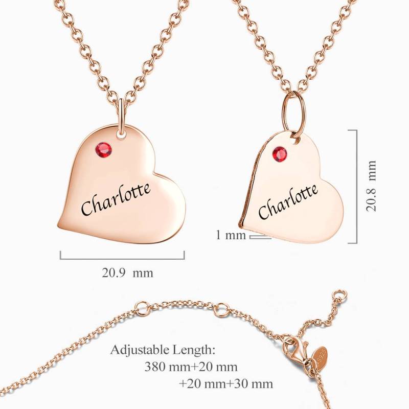 Heart Tag Personalized Birthstone Necklace With Engraving Rose Gold Plated Silver