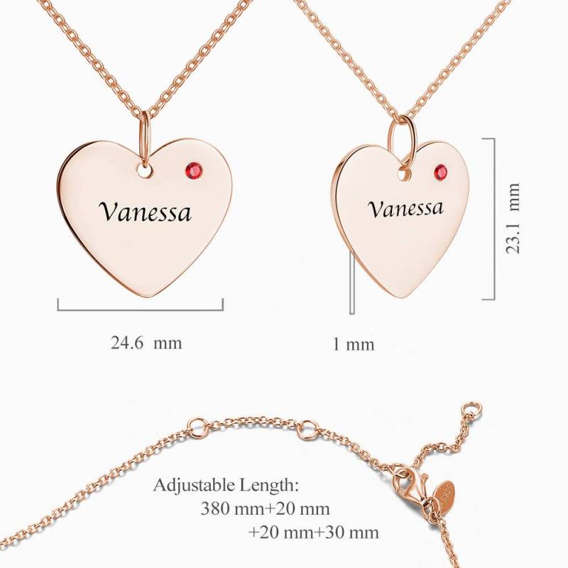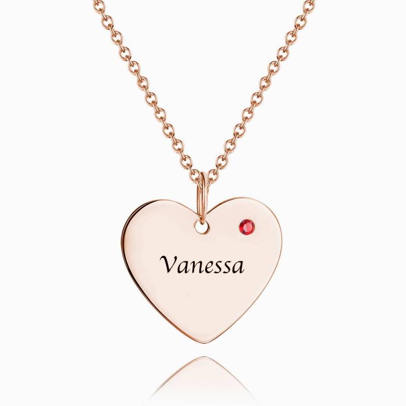 Heart Tag Personalized Birthstone Necklace With Engraving Rose Gold Plated Silver