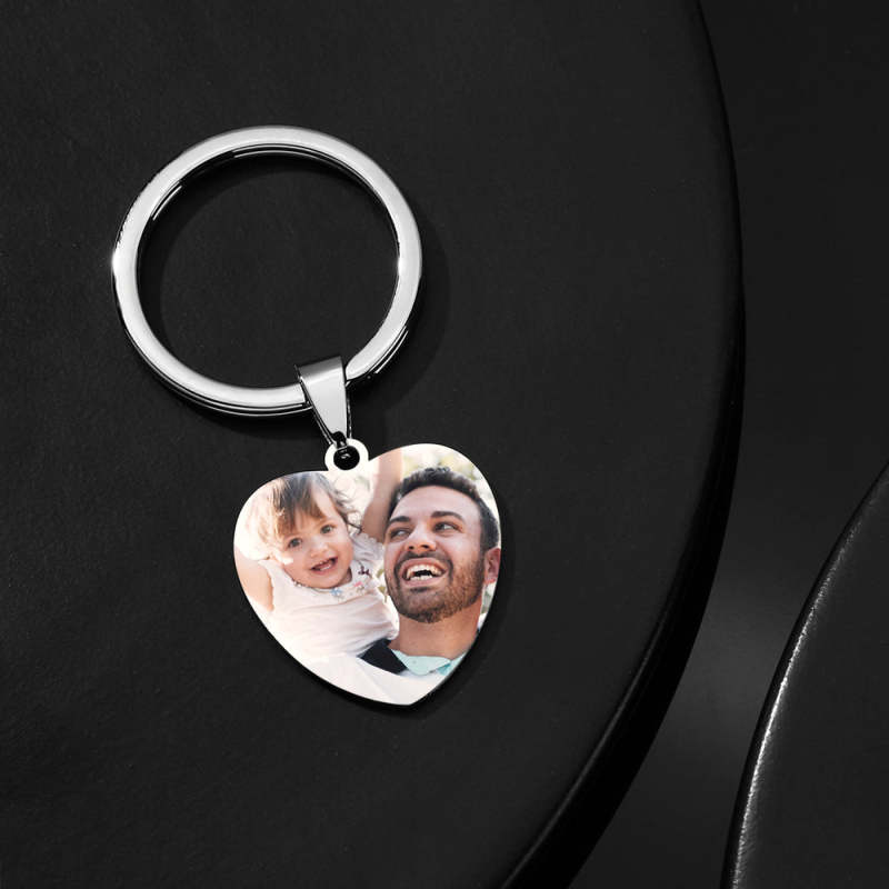 Heart Tag Photo Key Chain With Engraving Stainless Steel