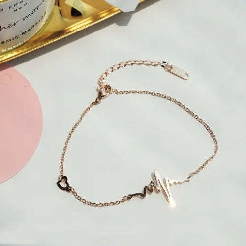 Heartbeat Electrocardiogram Fashion Anklet Rose Gold Color