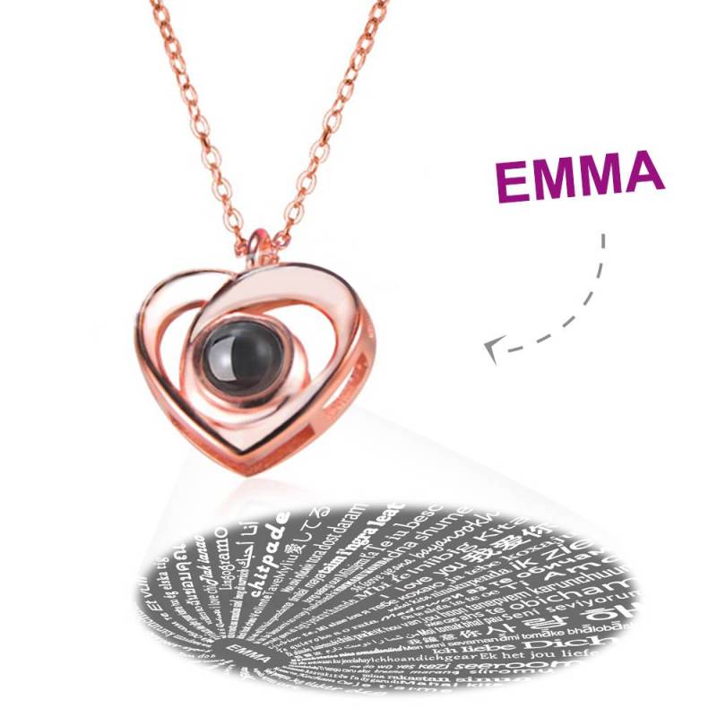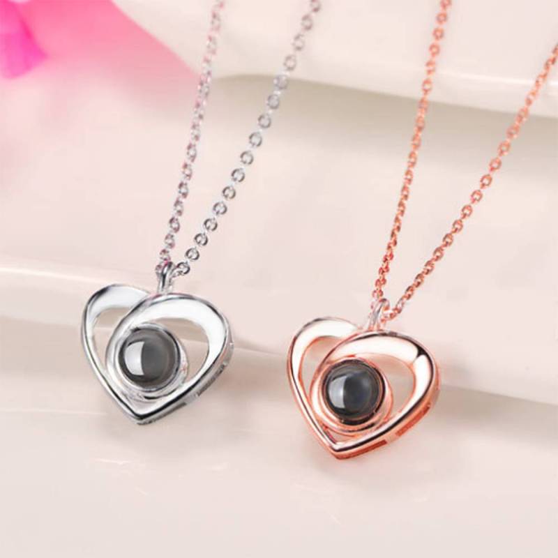 Personalized I Love You Necklace in 100 Languages Projection Engraved Necklace, Elegant Heart Necklace Rose Gold Plated - Silver