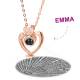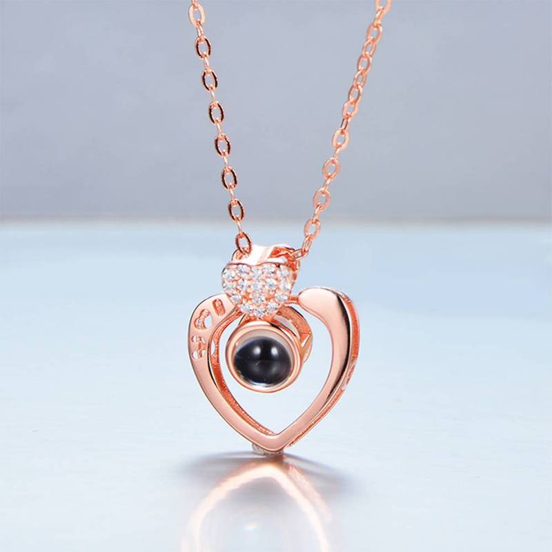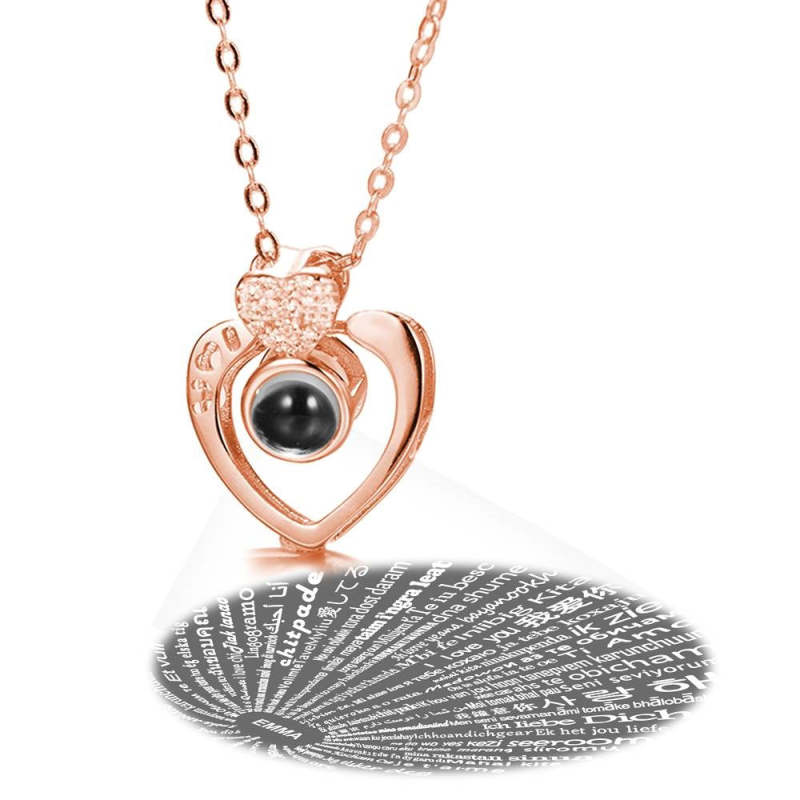 Personalized I Love You Necklace in 100 Languages Projection Engraved Necklace Two Hearts Rose Gold Plated - Silver