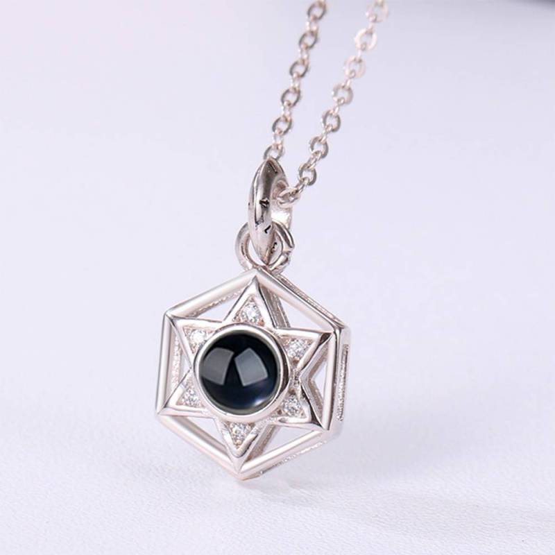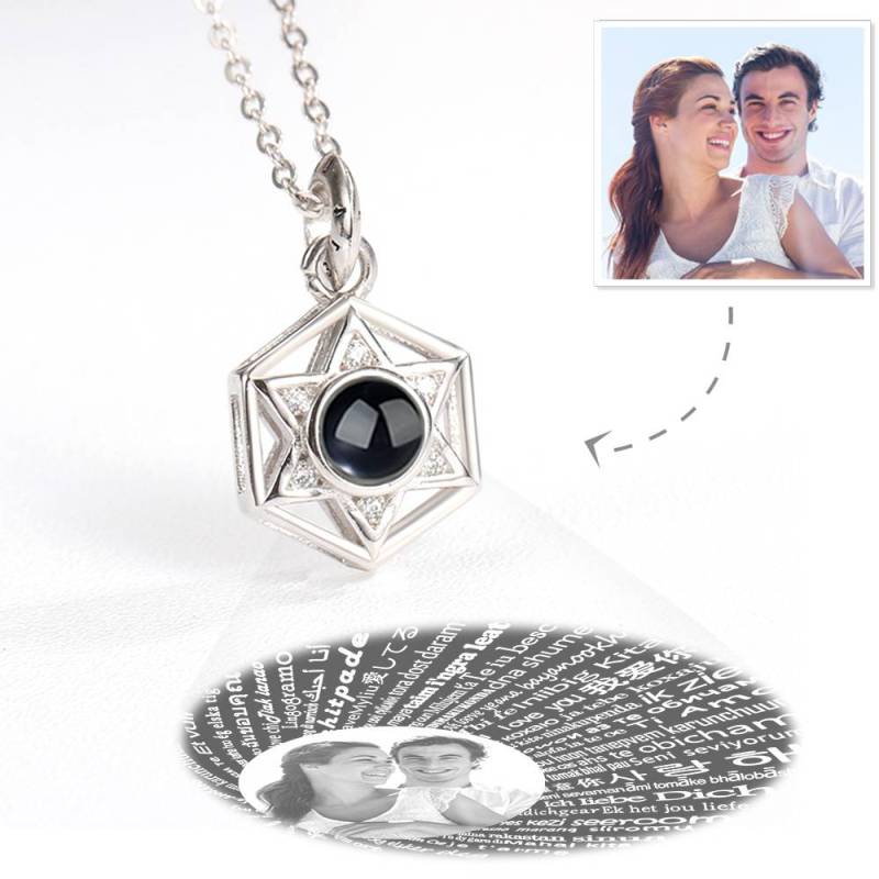 Personalized I Love You Necklace in 100 Languages Projection Photo Engraved Necklace Star Silver - Women's