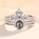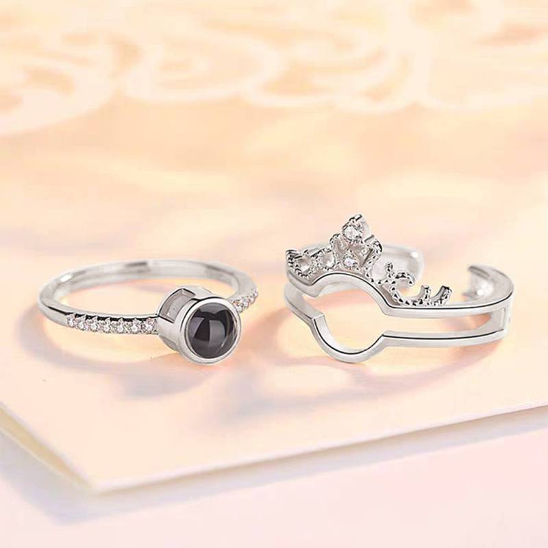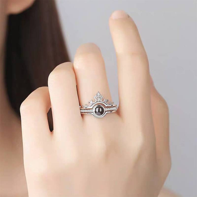 Custom I Love You Ring in 100 Languages Projection Photo Engraved Crown Ring, Romantic Gift Two in One Silver
