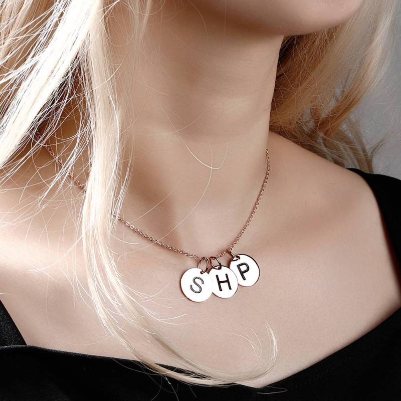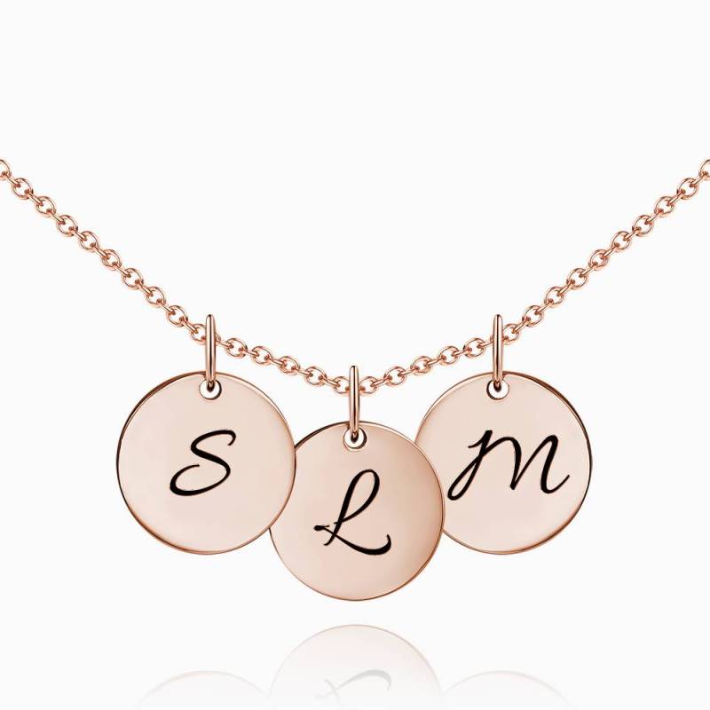 Initial Disc Engraved Necklace Rose Gold Plated