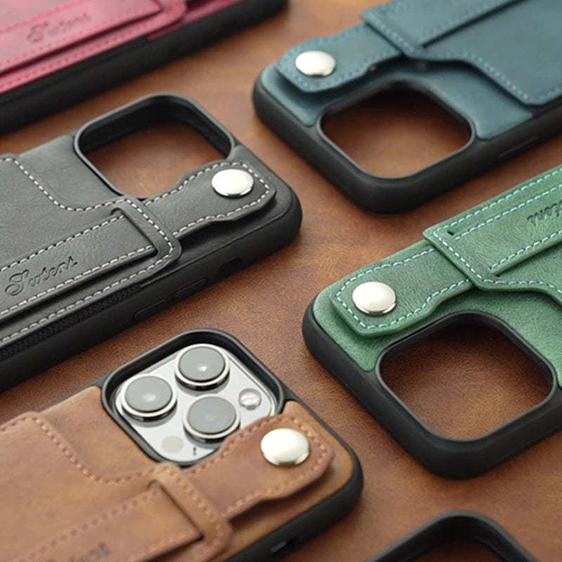 iPhone Case Leather Protective Cover Case with Card Slots Holder and Wrist Strap