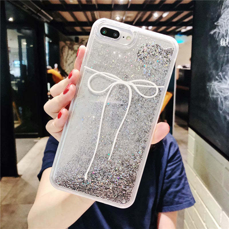 iPhone Quicksand White Bow-knot Phone Case
