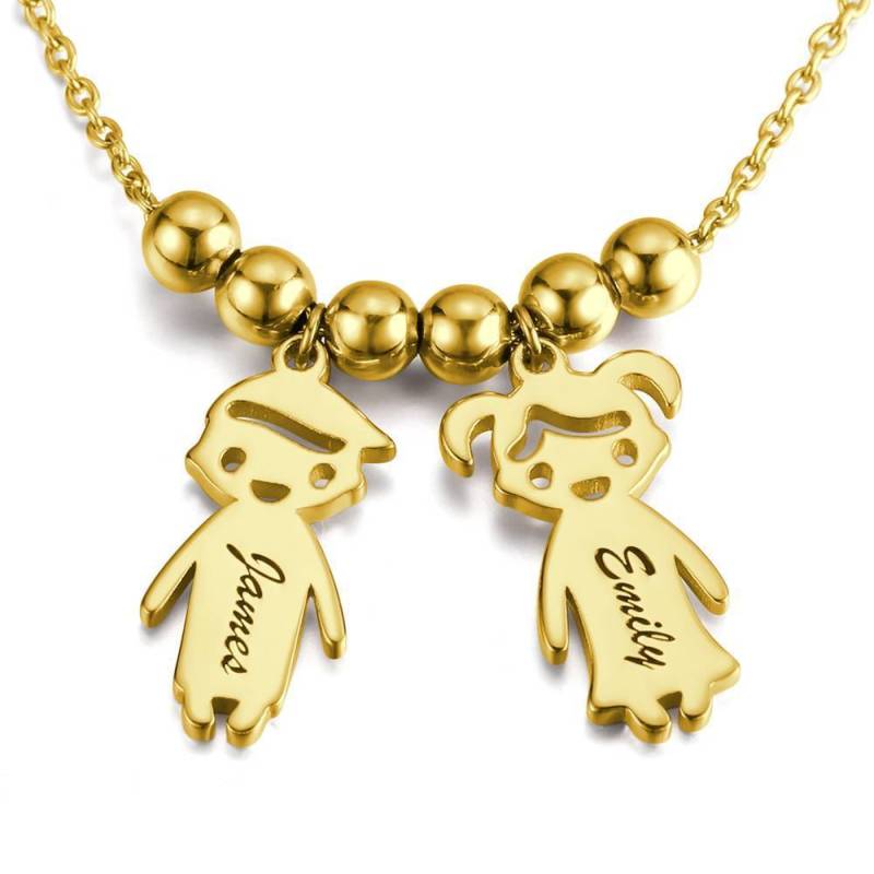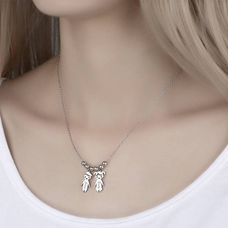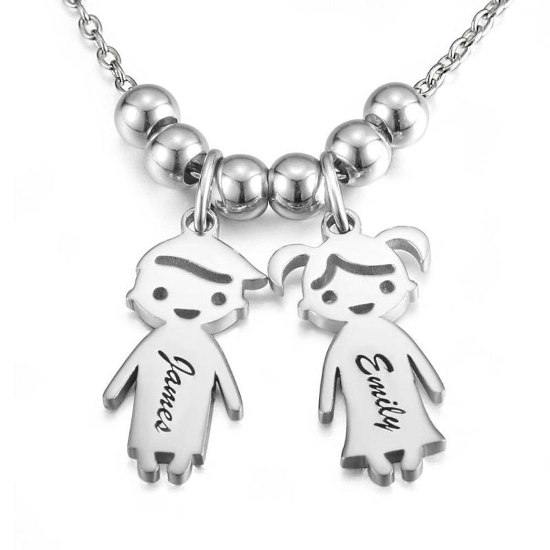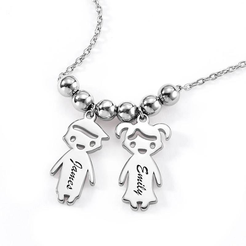 Kids Name Necklace with Engraving, Children Charms Necklace Smile Face Mom Jewelry Platinum Plated - Silver