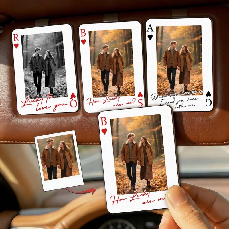 King & Queen Custom Couples Photo Drive Safe I Love You We're A Perfect Pair - Personalized Wooden Photo Car Visor Clip
