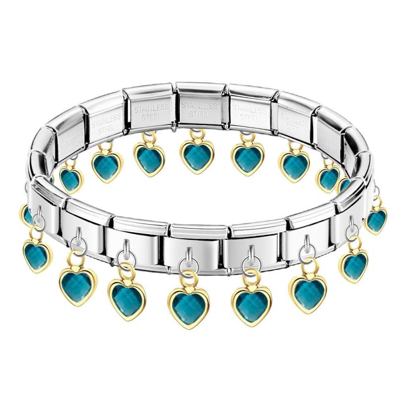 Lake Blue Heart Pendant Vintage Italian Charm Bracelet