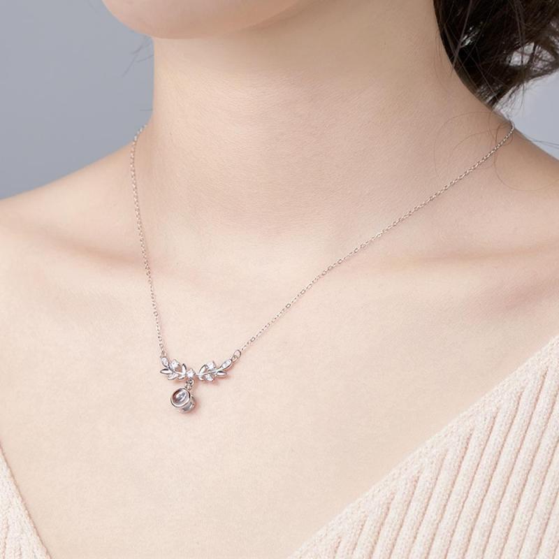 Laurel Leaf Projection Necklace Personalized Picture Inside Pendant Sterling Silver Keepsake Jewelry