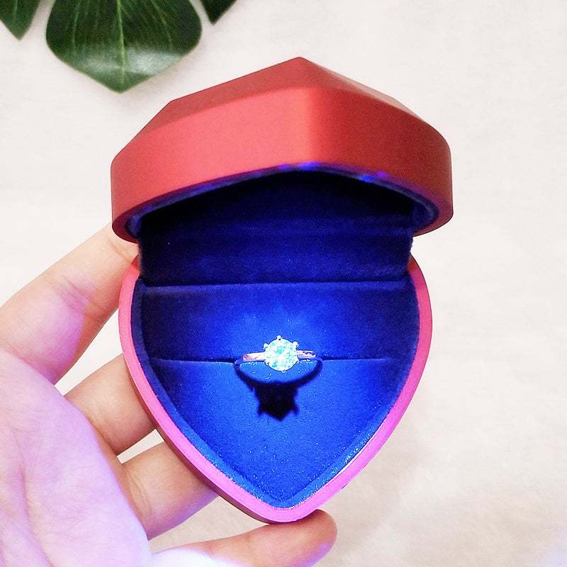 LED Heart Shaped Ring Box Jewelry Box with Light Valentine's Day Gifts for Proposal Wedding Engagement