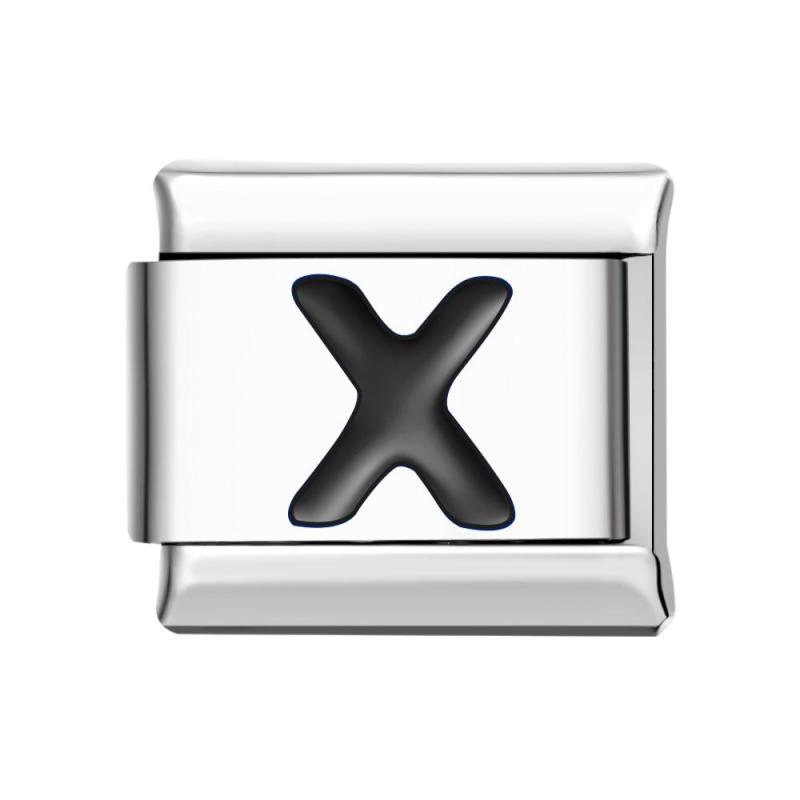 Letter X-Black Italian Charm For Italian Charm Bracelets Composable Link