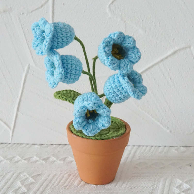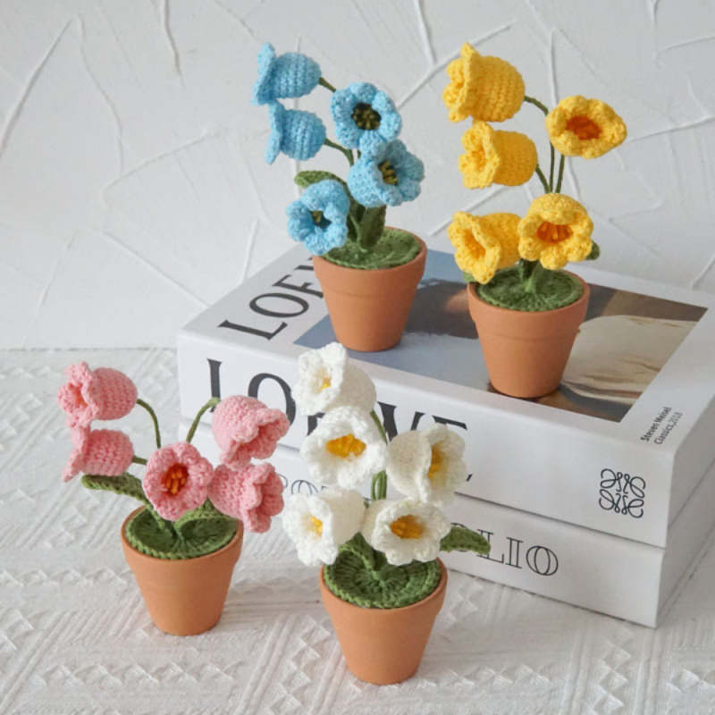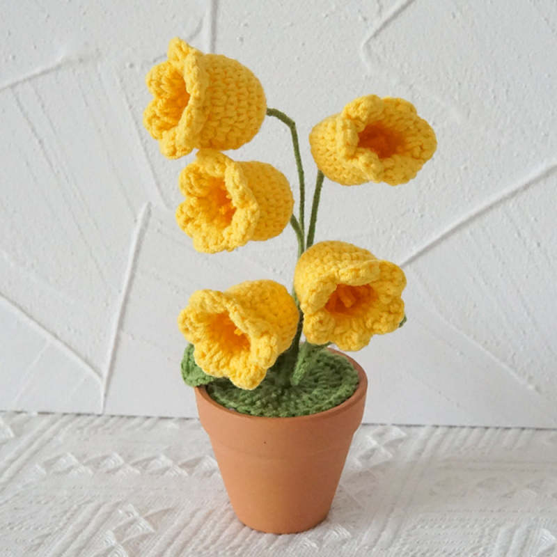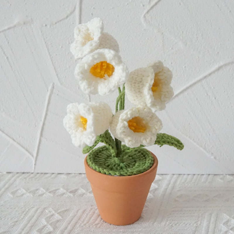Lily of the Valley Potted Plants Completed Hand Woven Knitted Potted Plants Gift for Handicraft Lover