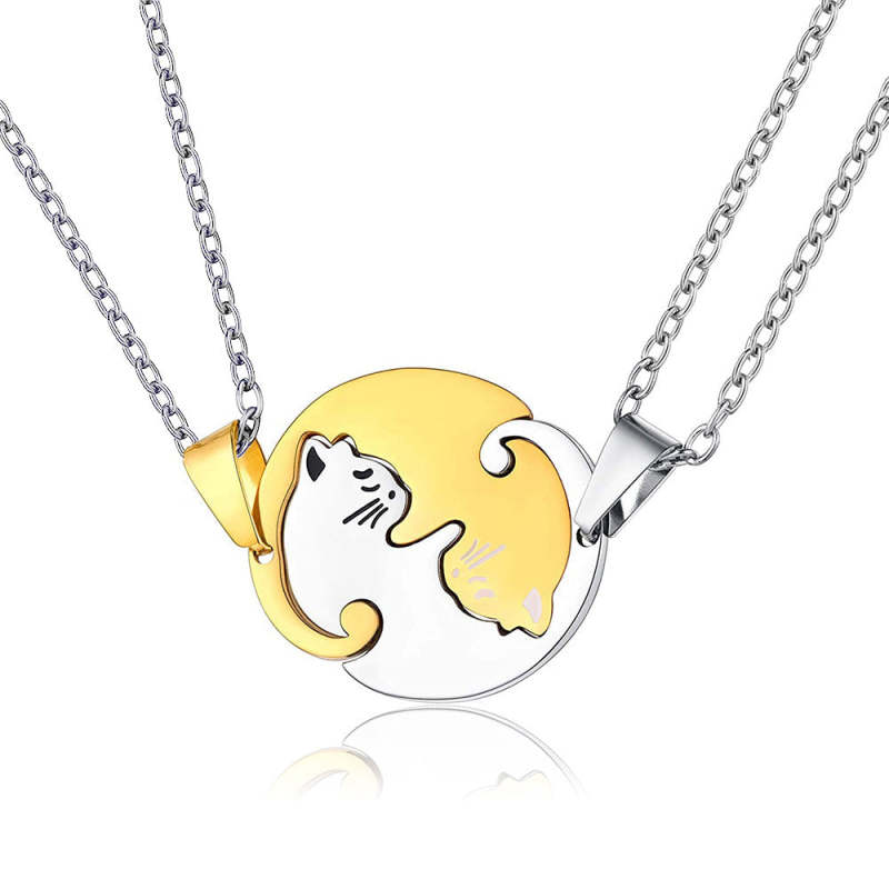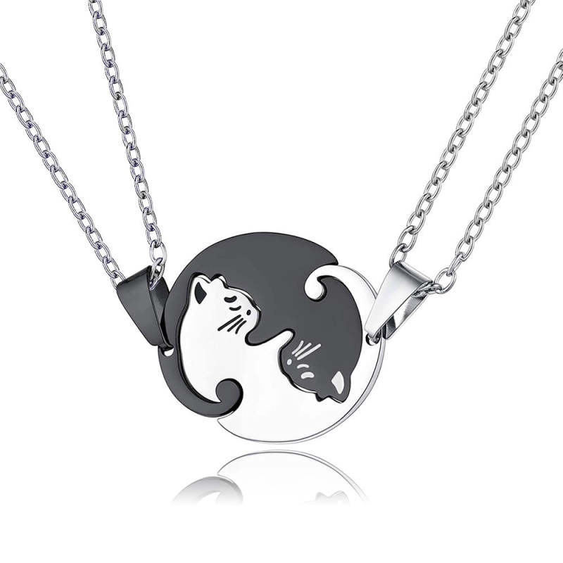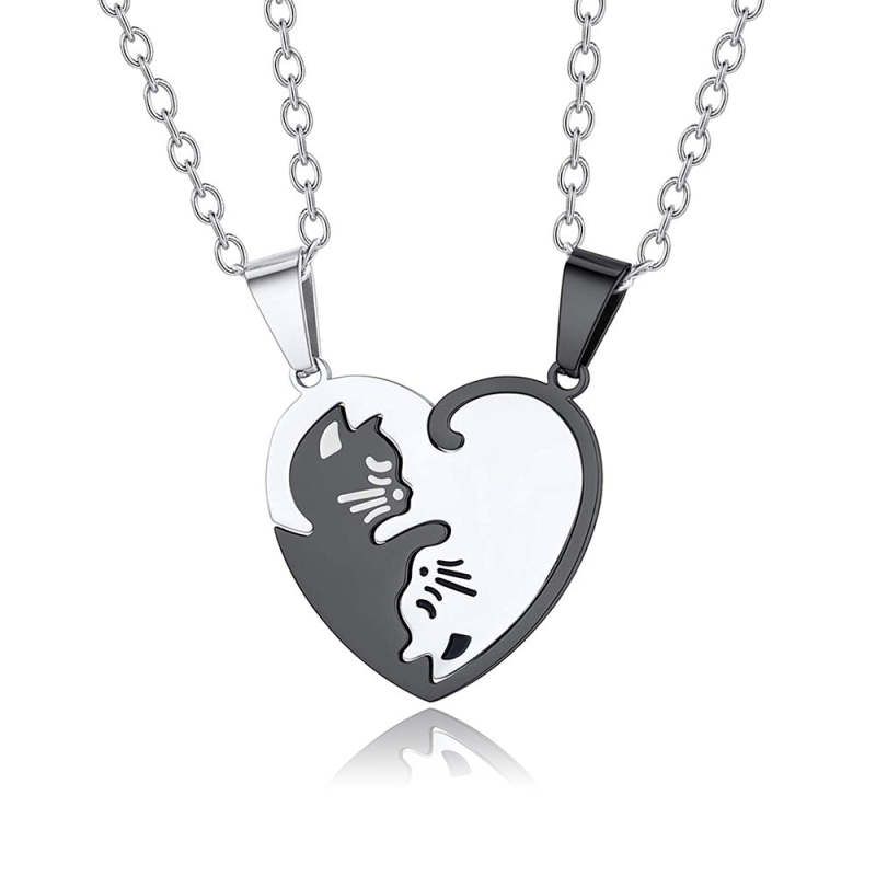 Magnetic Cat Necklaces Couples Friendship Pendant Heart Necklace for Him and Her