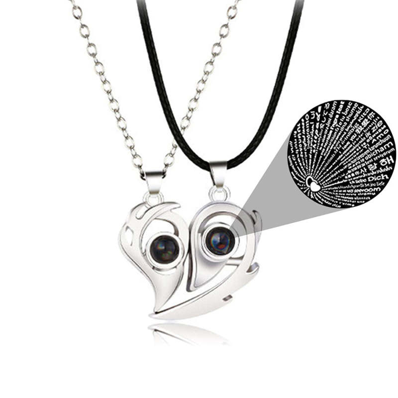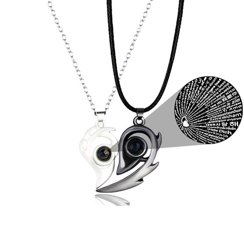 Magnetic Couples Necklaces 100 Languages Projection Pendant Jewelry Gifts for Him and Her
