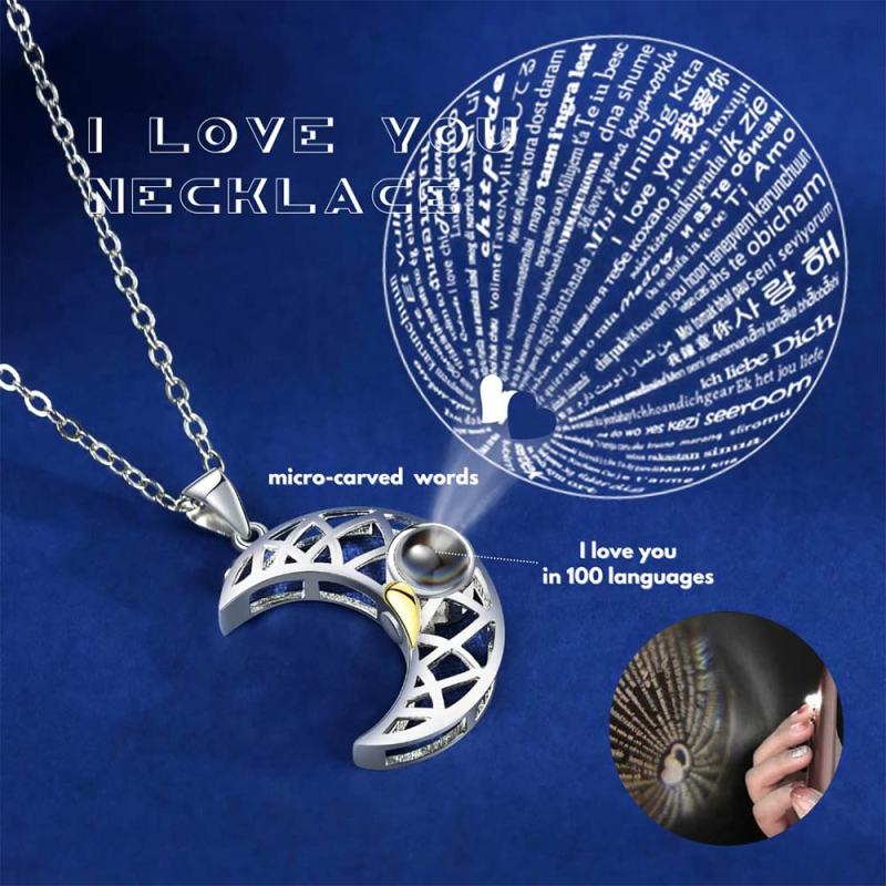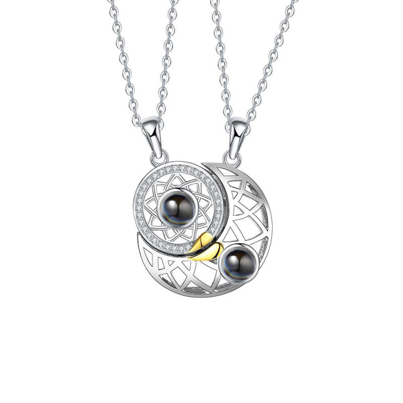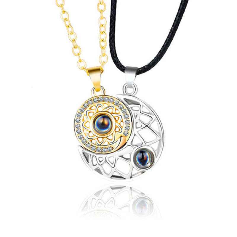 Magnetic Couples Necklaces sun and moon Pendant Necklaces Projection with 100 Languages I Love You Gifts for Him and Her