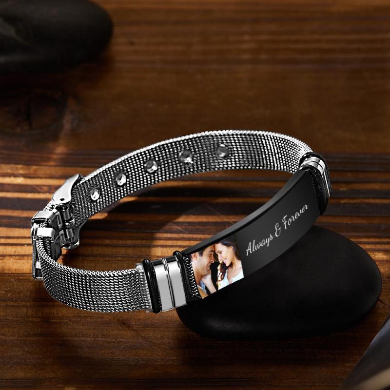 Memorial Gifts Custom Bracelet Photo Engraved Stainless Steel Bracelet