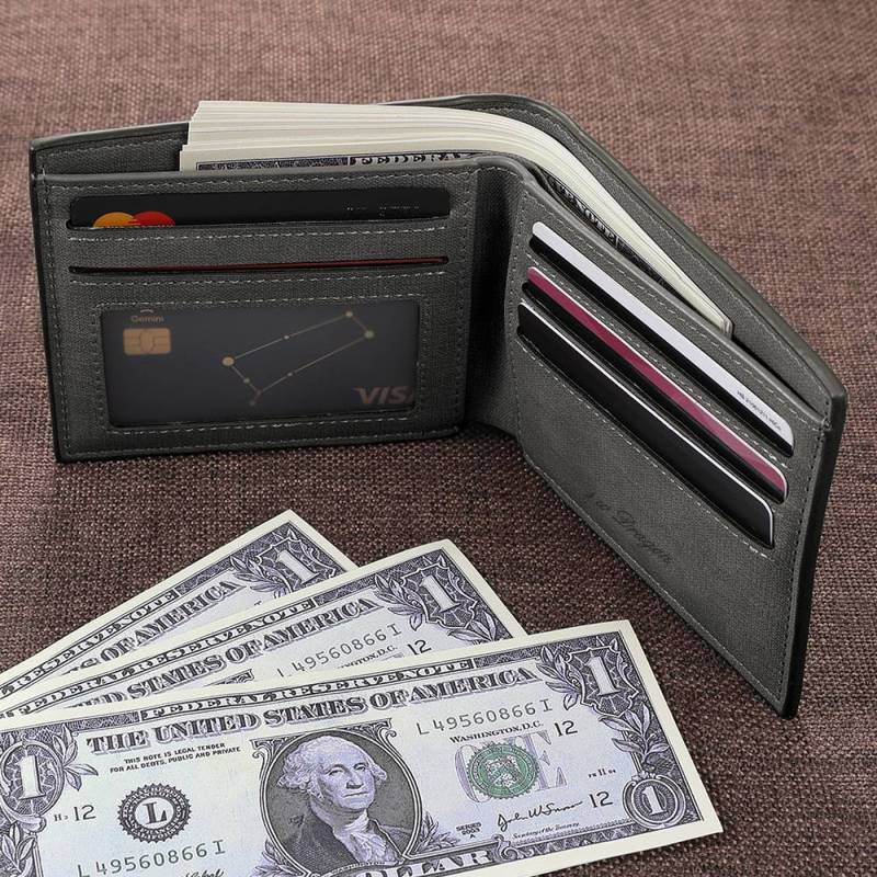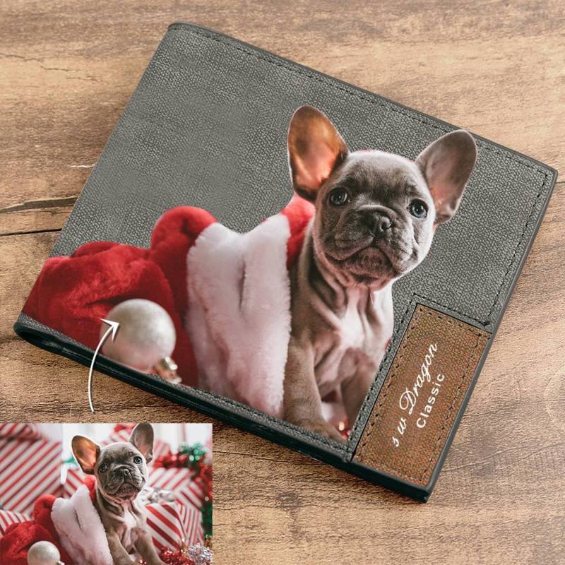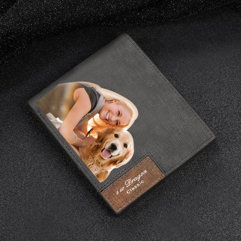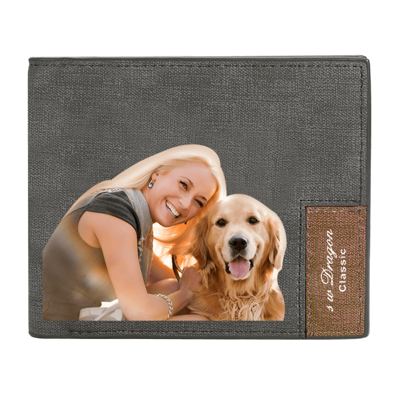 Men's Bifold Custom Photo Wallet - Grey Leather