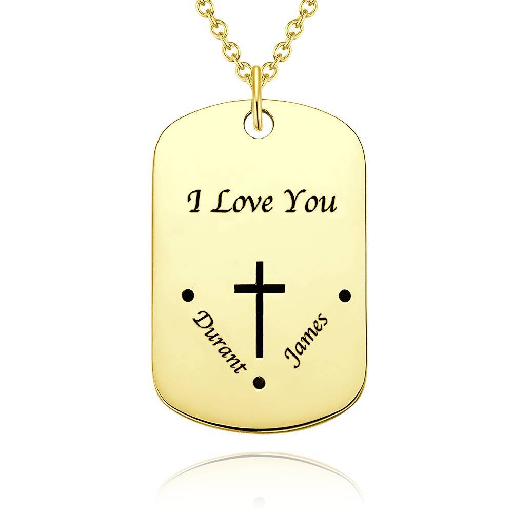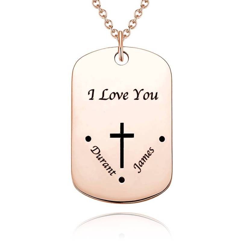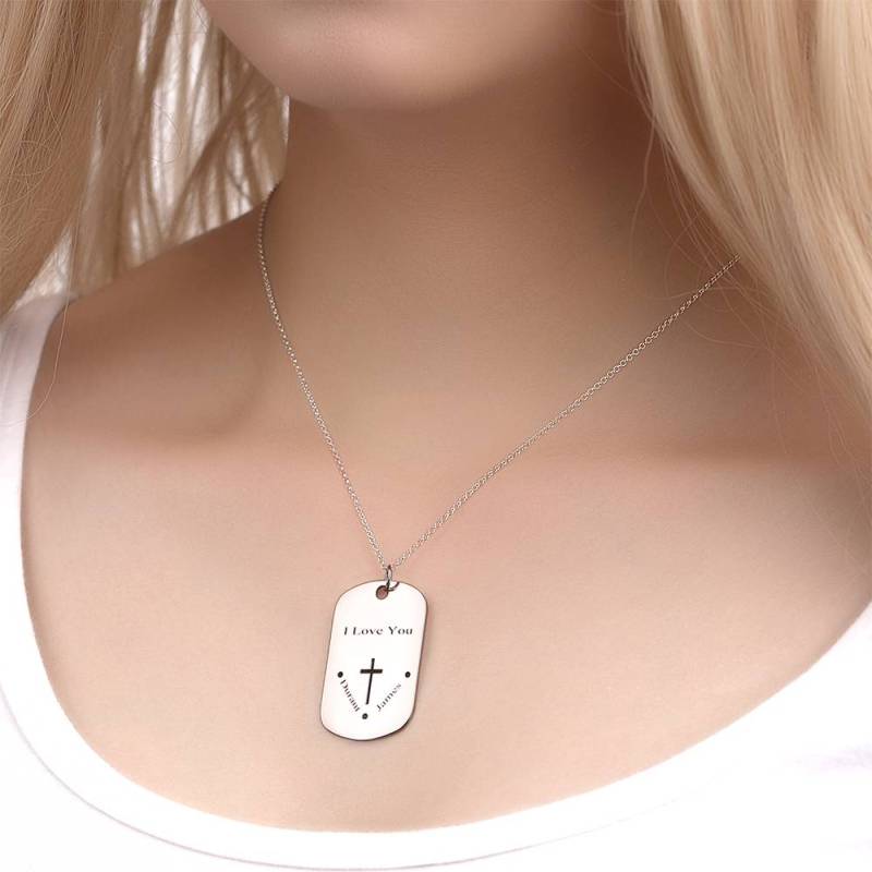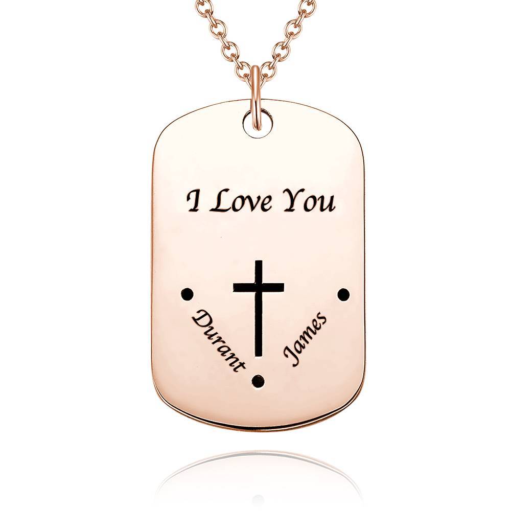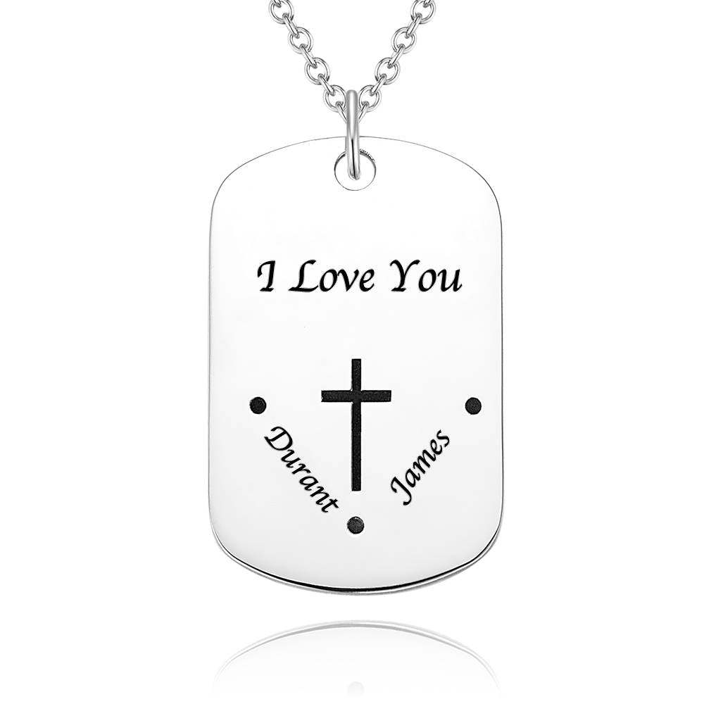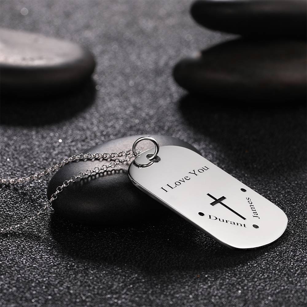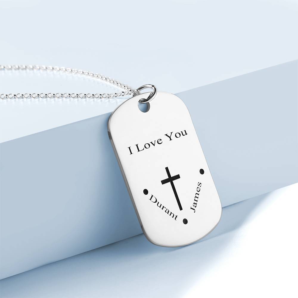 Men's Engraved Dog Tag Name Necklace, Valentine's Day Gifts Cross Necklace Platinum Plated