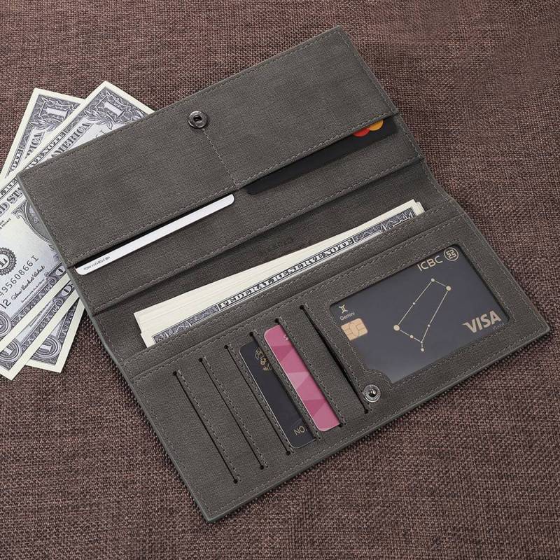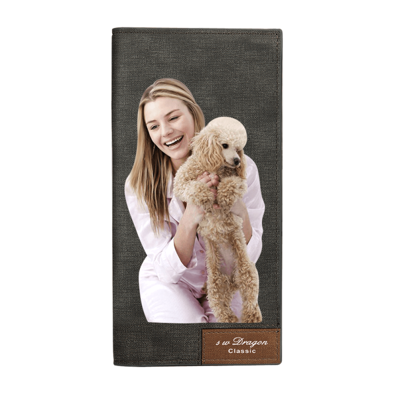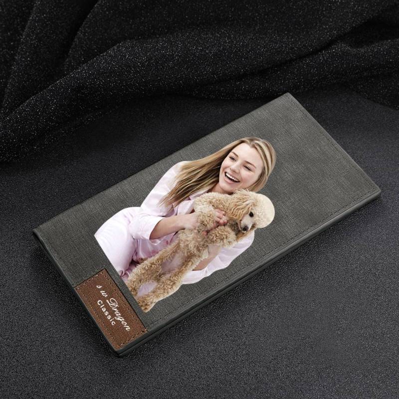 Men's Long Style Bifold Custom Photo Wallet - Grey Leather