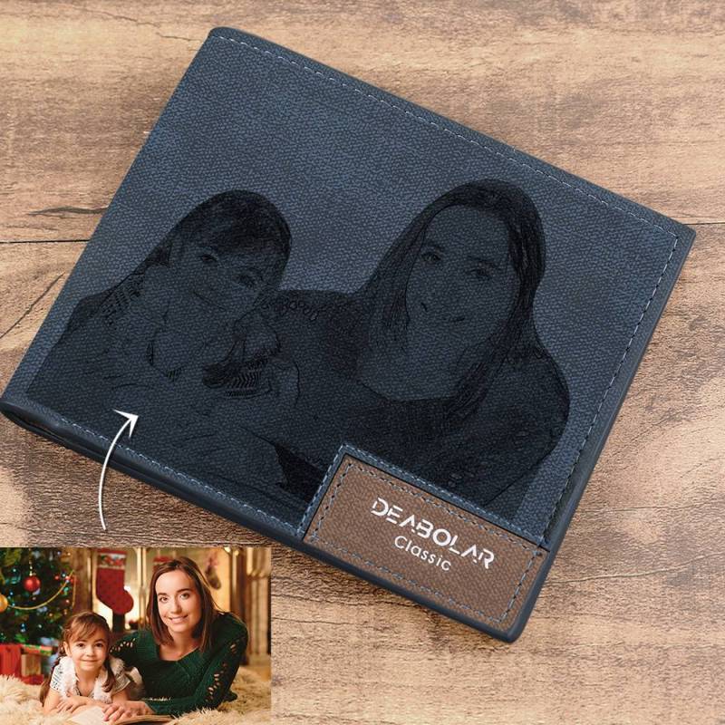 Men's Photo Engraved Bifold Photo Wallet - Blue Leather For Him