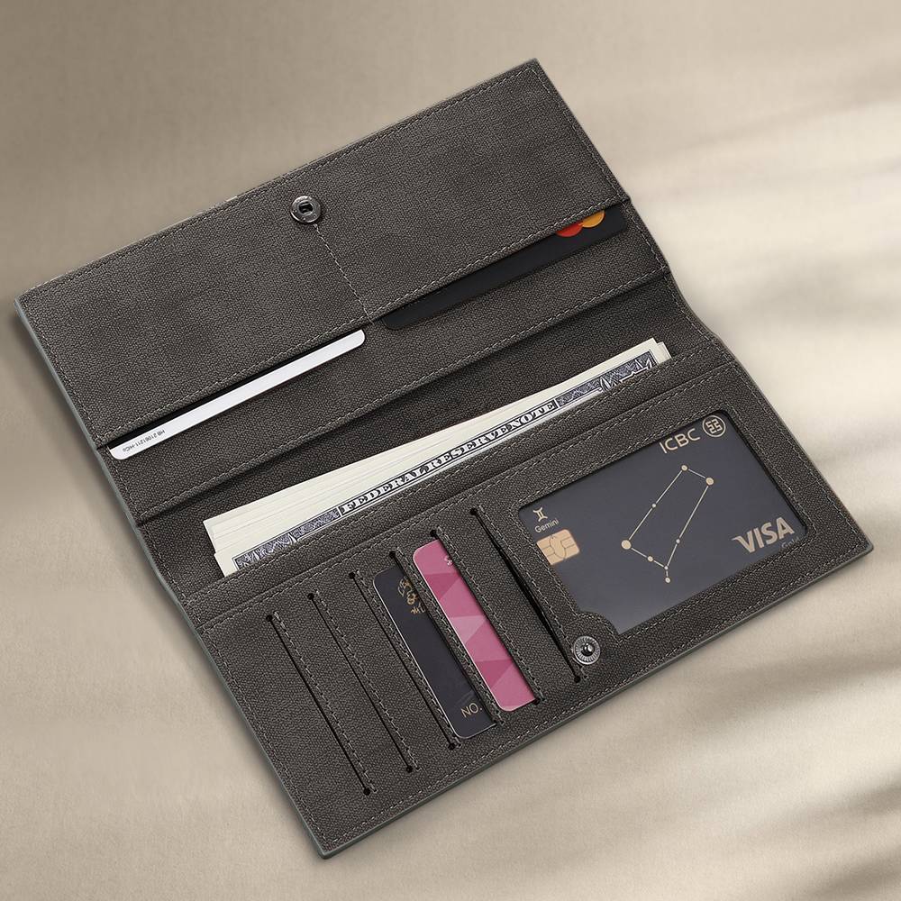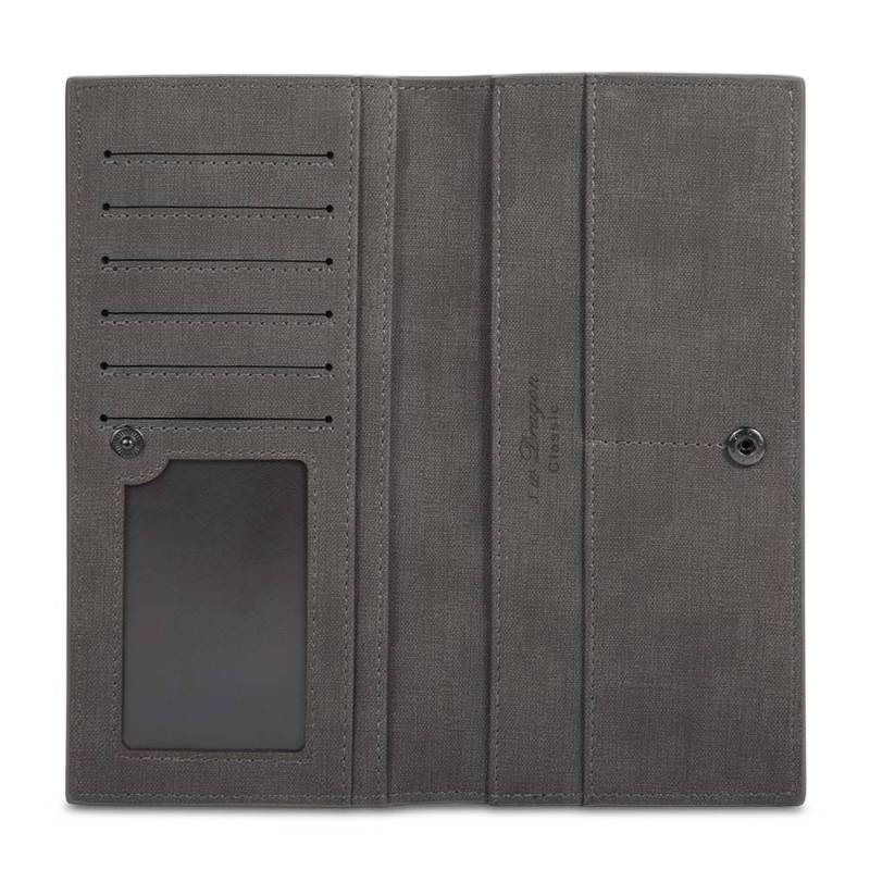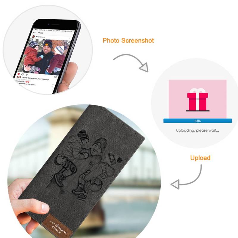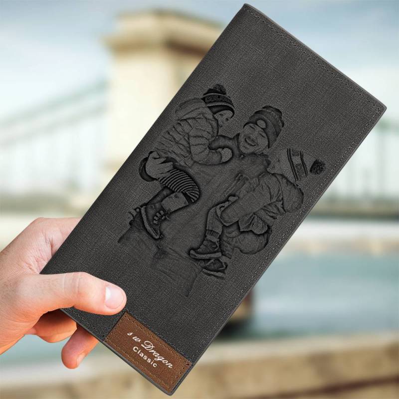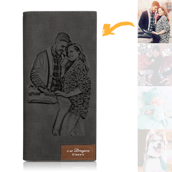 Men's Photo Engraved Long Style Bifold Photo Wallet - Gray Leather