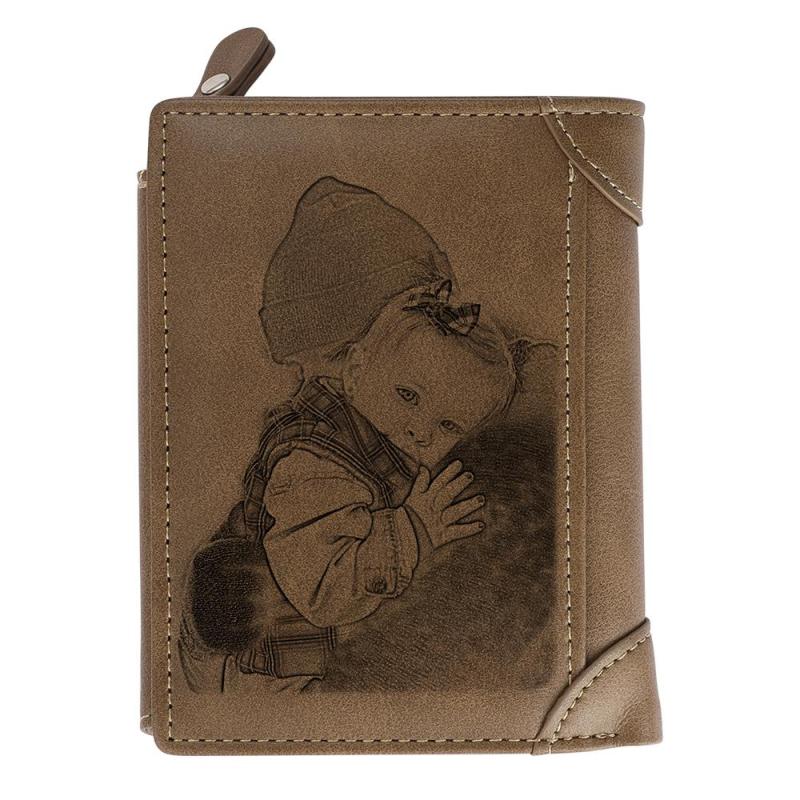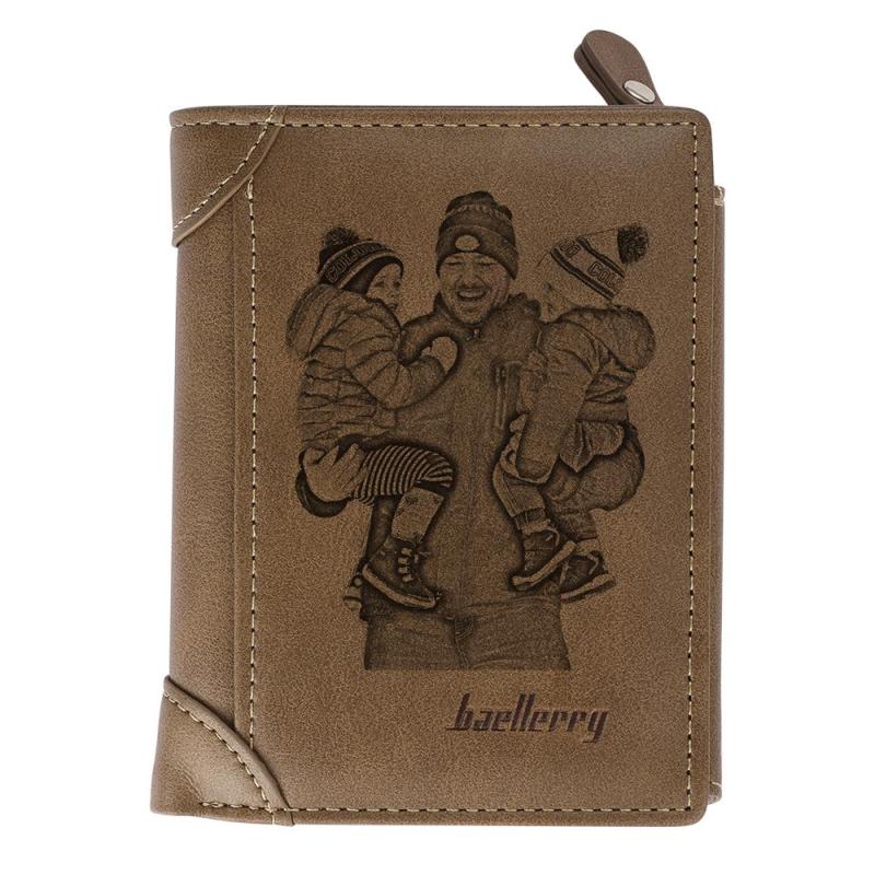 Men's Bifold Custom Double-Sided Photo Wallet Two Pictures - Light Khaki