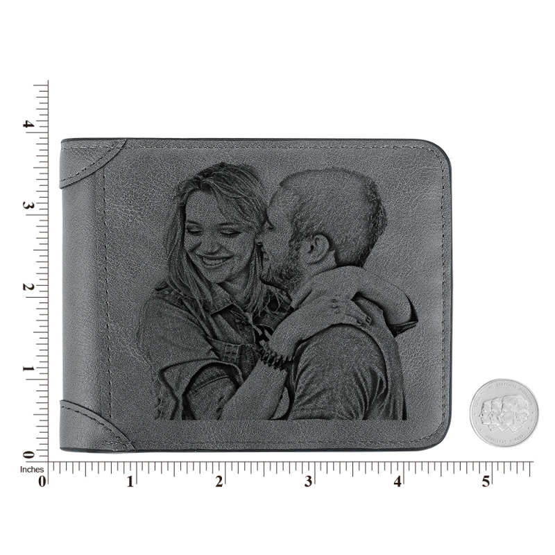 Men's Custom Engraved Bidford Photo Wallet Grey Leather Christmas Gift