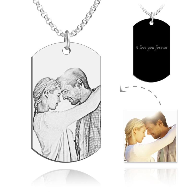 Men's Engraved Stainless Steel Dog Tag Photo Pendant Necklace