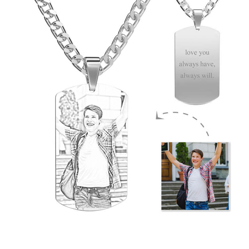 Men's Necklace Engraved Necklace Pesonalized Photo Necklace Back To School Gift