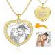 Men's Personalized Rhinestone Crystal Heart Shape Photo Engraved Necklace 14 Gold Plated Golden - Sketch