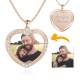 Men's Personalized Rhinestone Crystal Heart Shape Photo Engraved Necklace Rose Gold Plated - Colorful