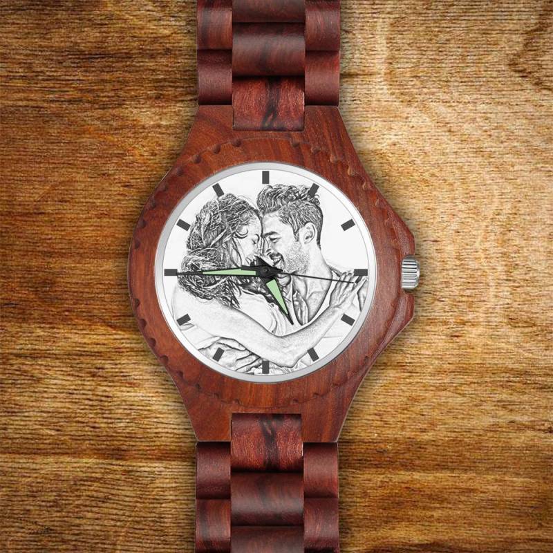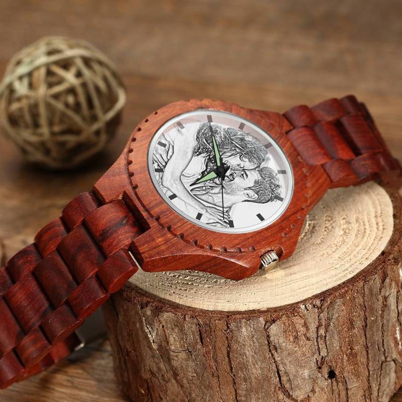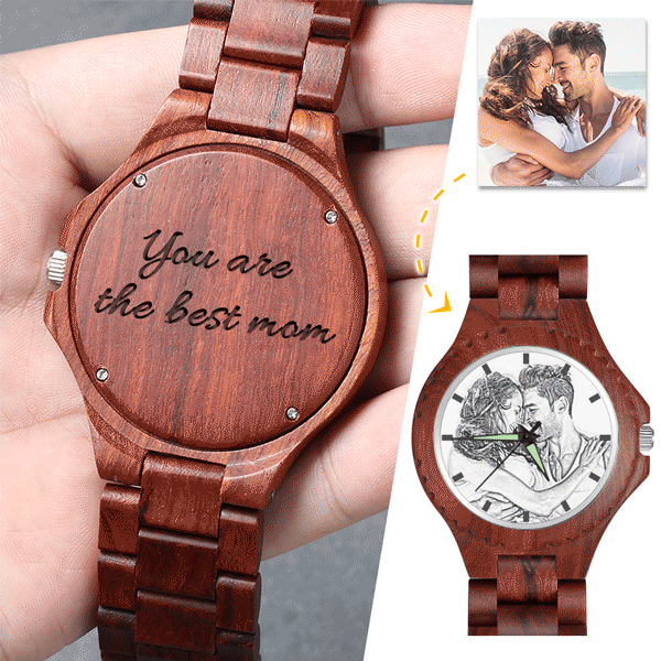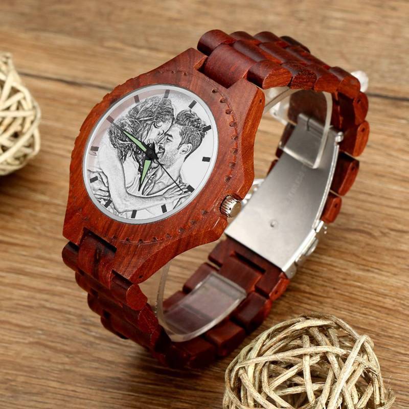 Men's Engraved Photo Wooden Watch Wood Grain Strap 48mm