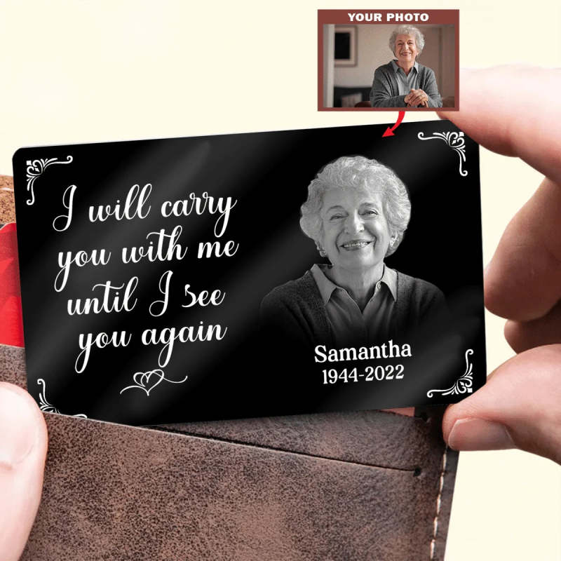 Metal Wallet Card - I Will Carry You With Me Until I See You Again - Memorial Gift From Photo