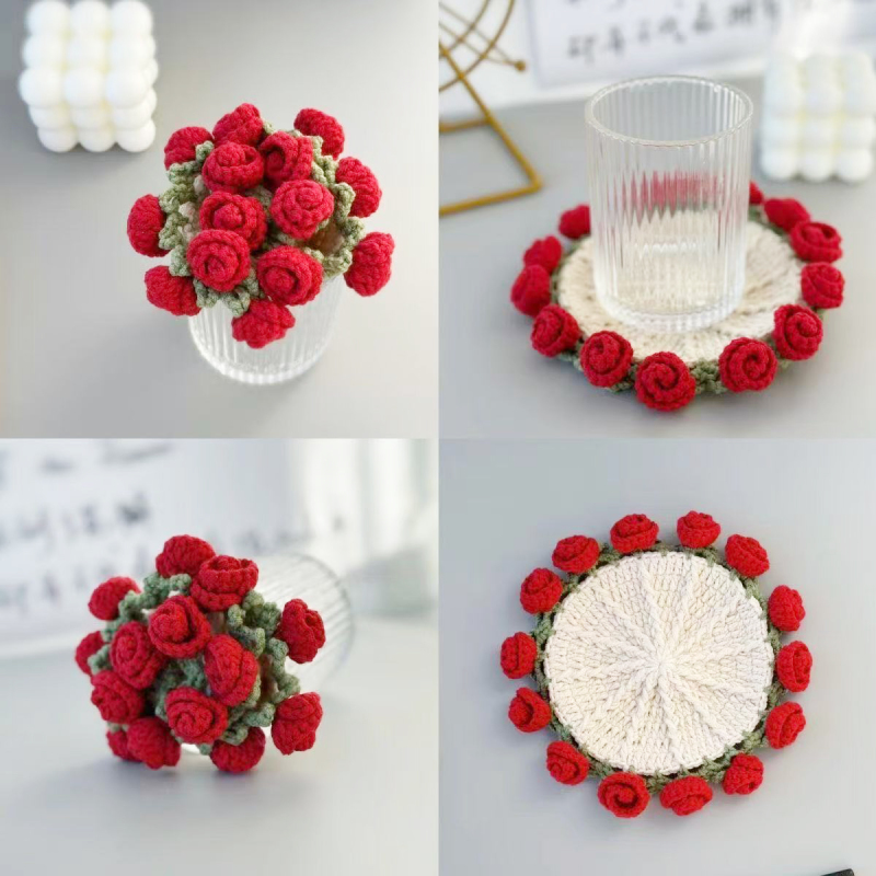 Christmas Gifts Handmade Crochet Rose Bouquet Coaster Set Transformable Floral Coaster & Home Decor Unique Eco-Friendly Gift