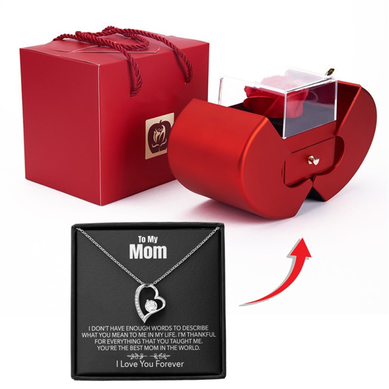 Mother's Day Gifts Preserved Real Rose with Sparkling Diamond To My Mom Necklace with Luxurious Preserved Real Rose Box and Message Card