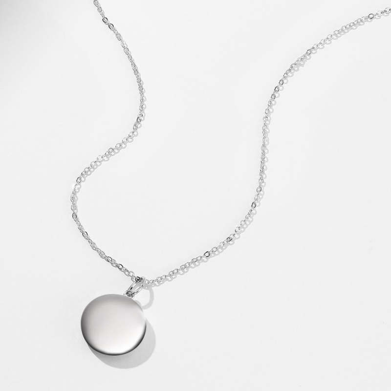 Mother's Necklace - Round Engraved Photo Necklace Silver