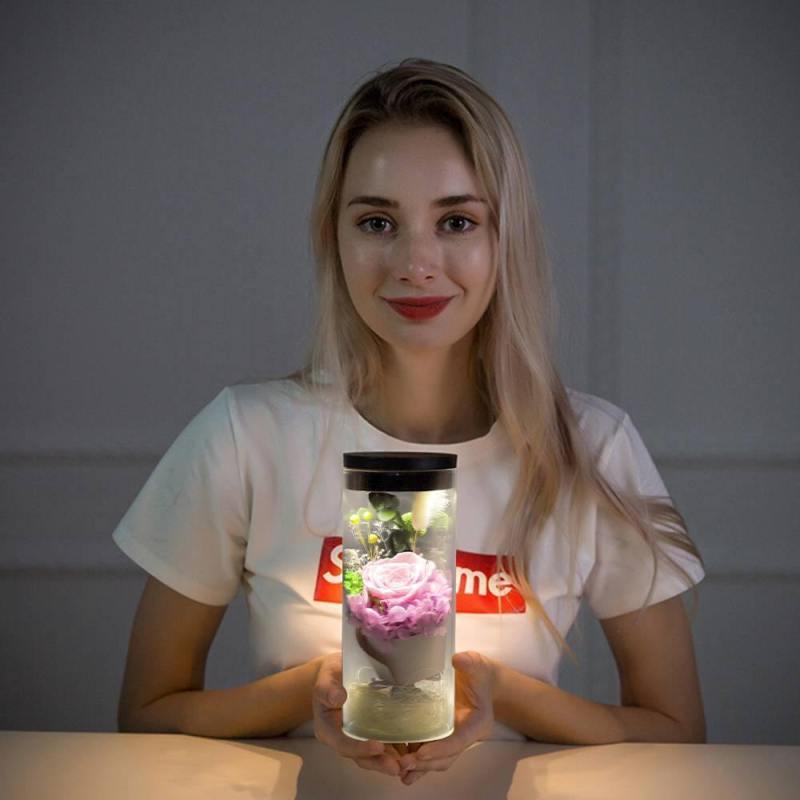 Night Lamp, LED Bottle Lamp Touch Light - Pink Flower