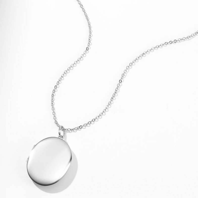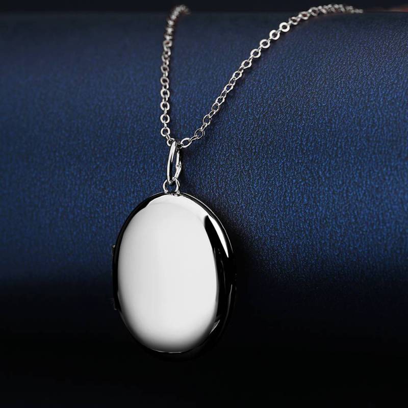 Oval Photo Locket Necklace With Engraving Platinum Plated