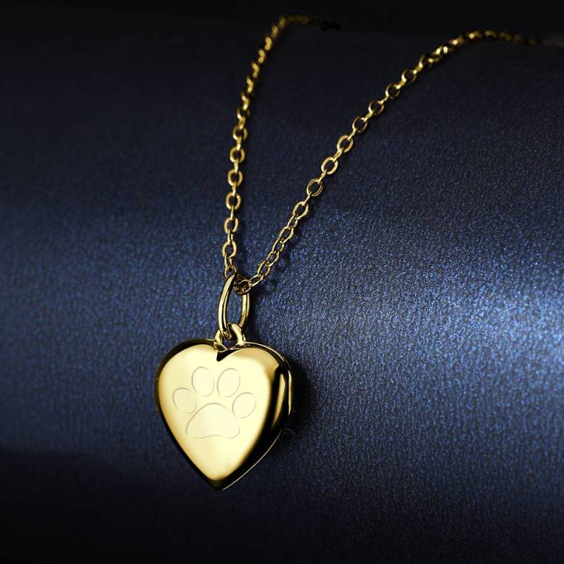 Pawprint Heart Engraved Photo Necklace 14k Gold Plated Silver