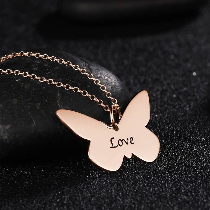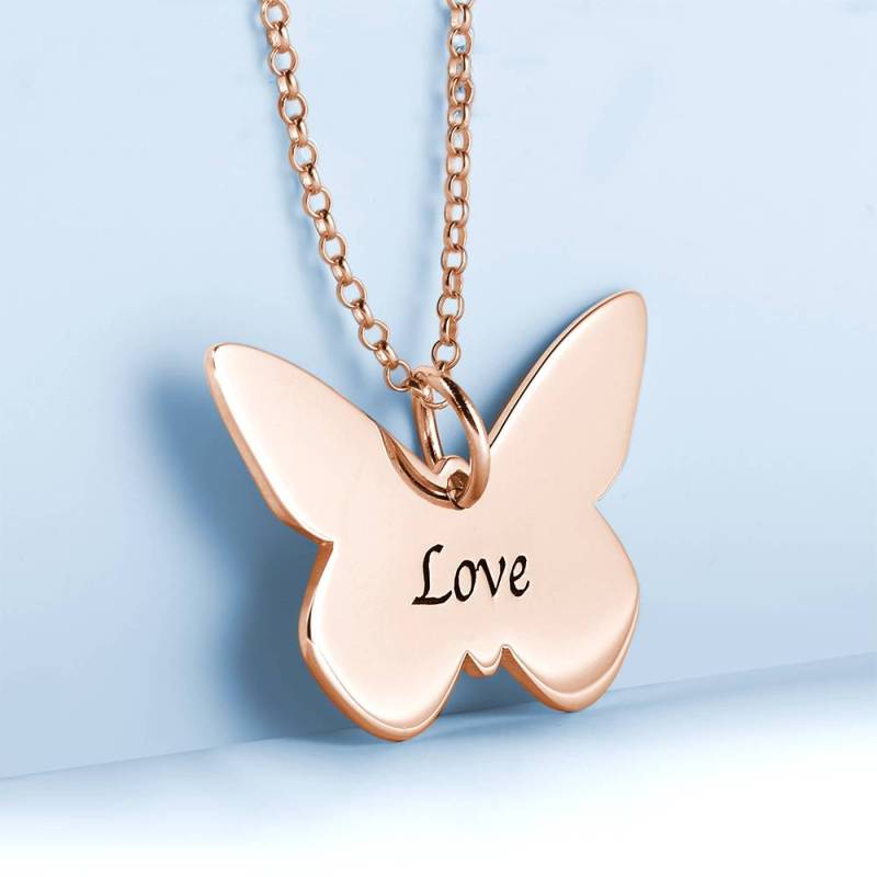 Butterfly Engraved Necklace Rose Gold Plated