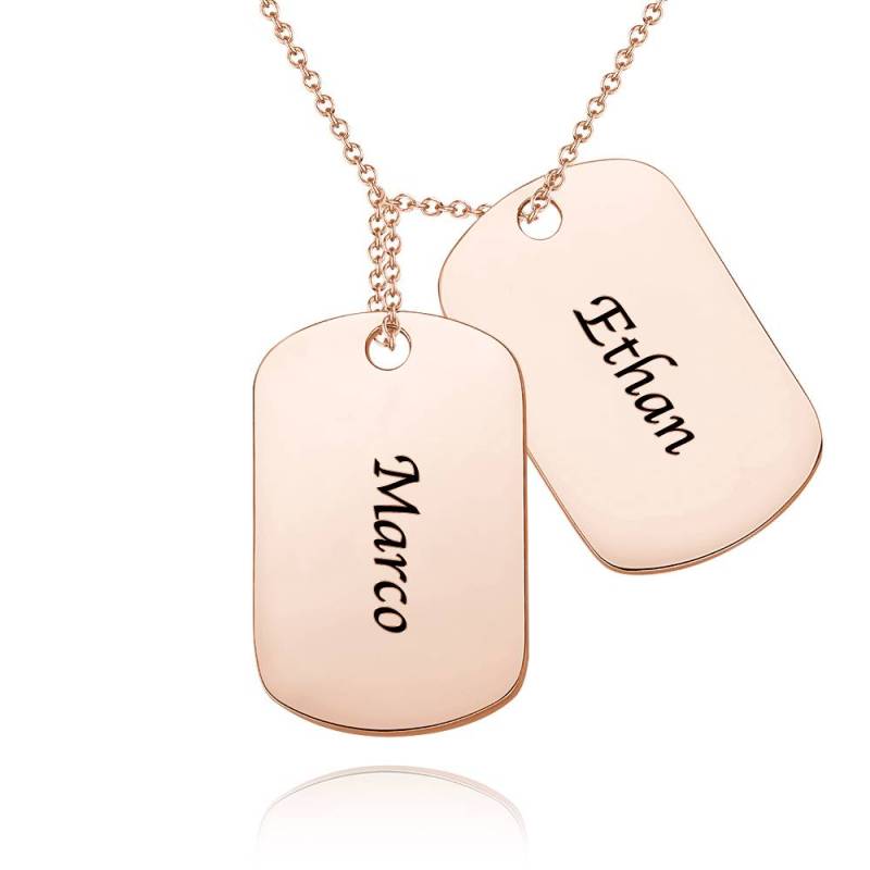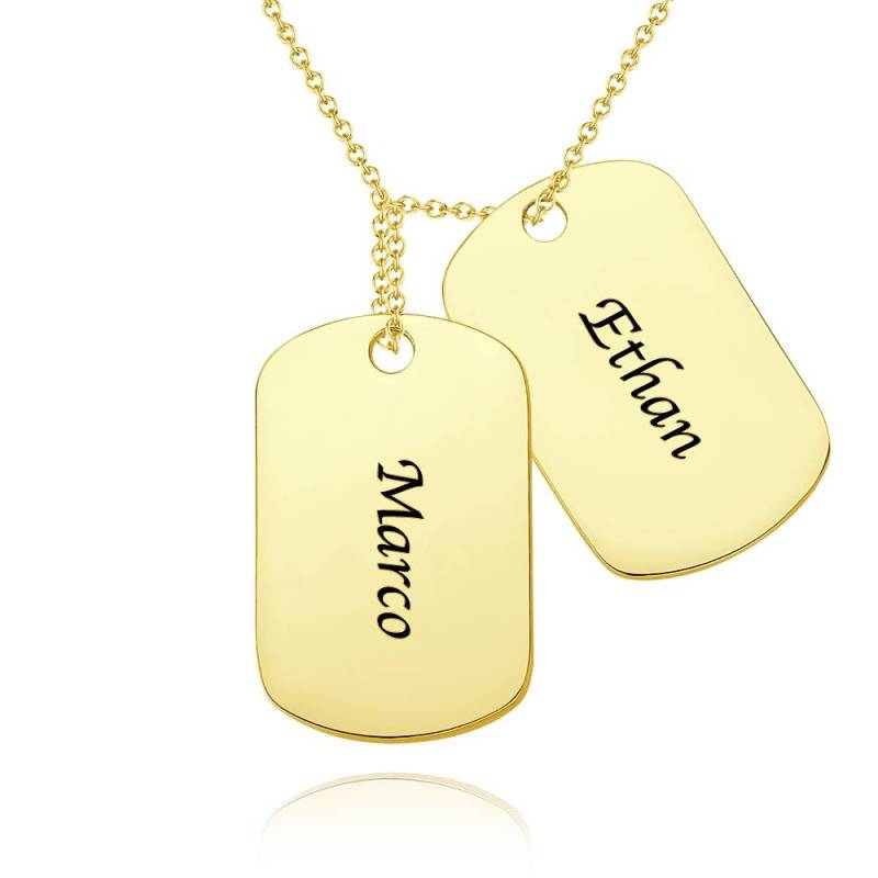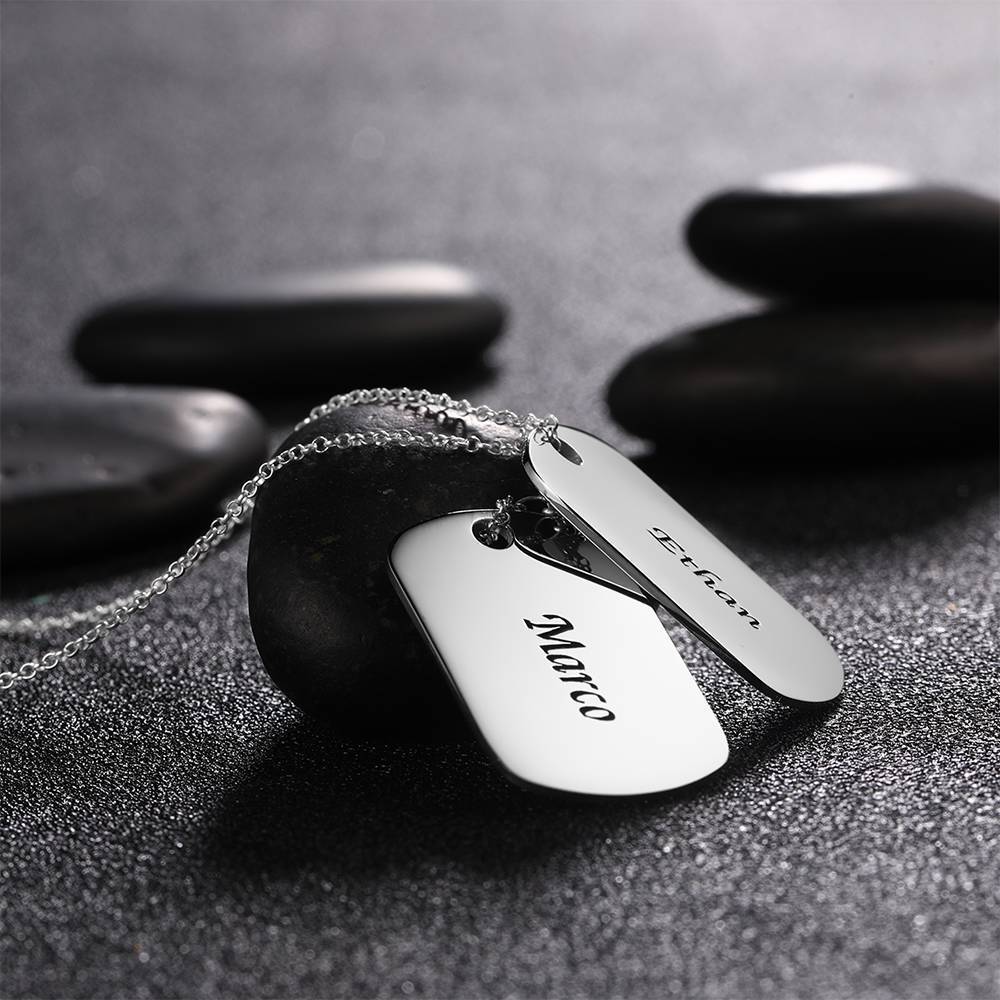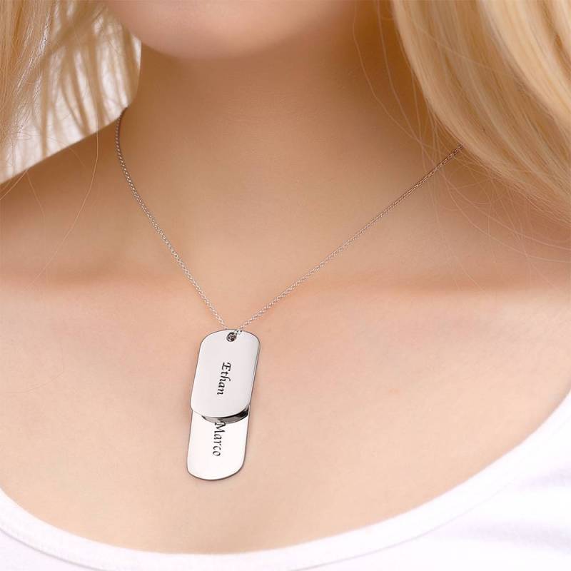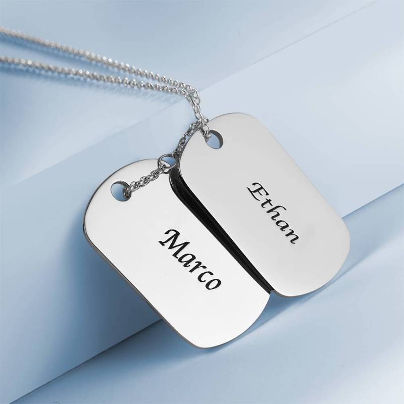 Personality Engraved Two Dog Tag Necklace Platinum Plated