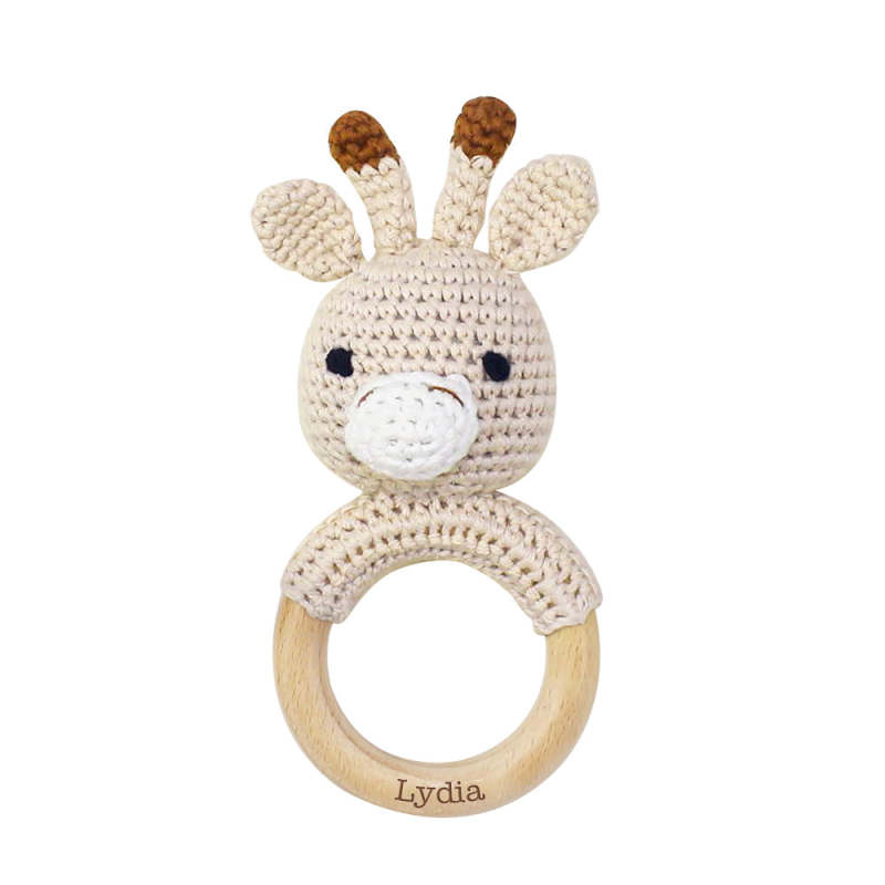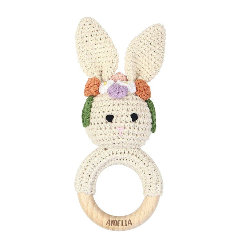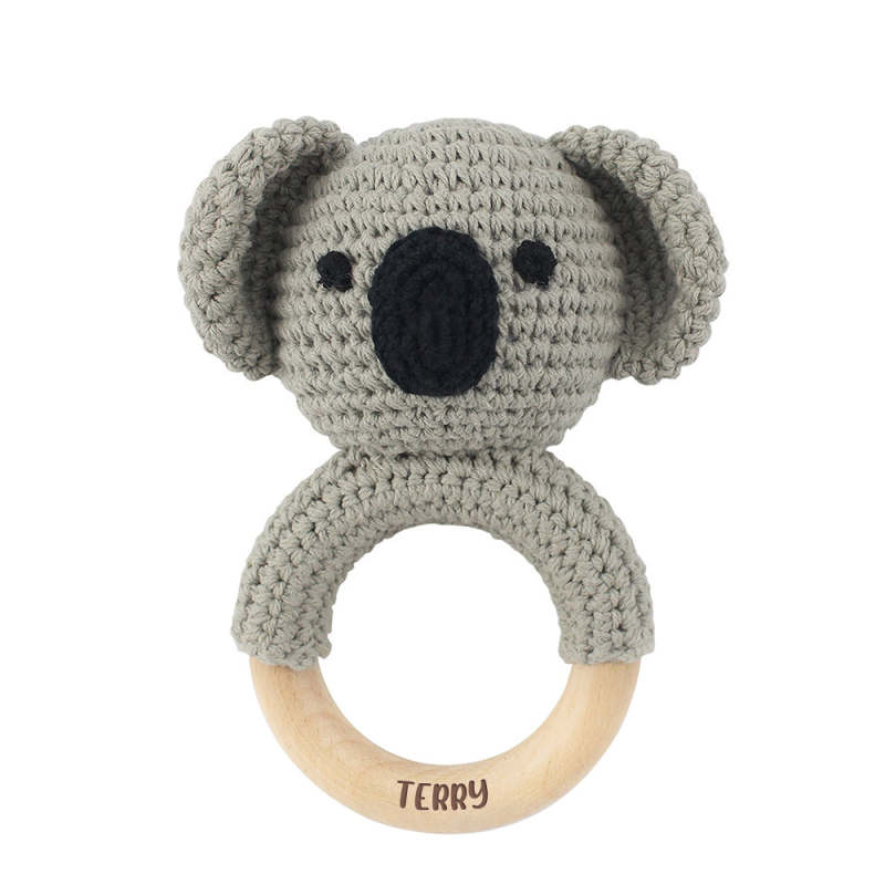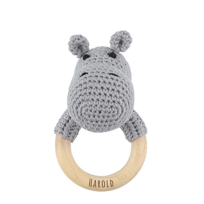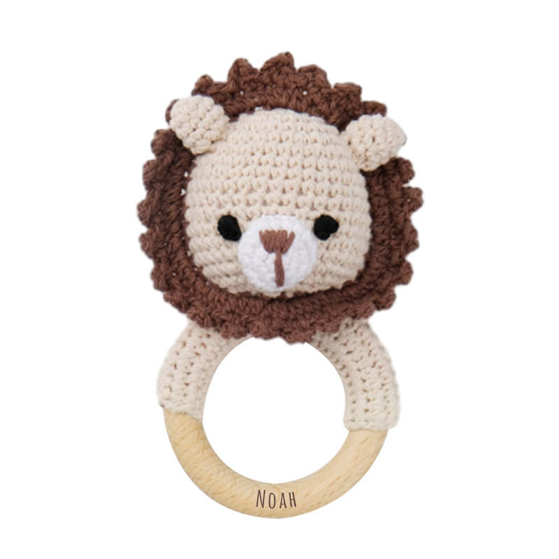 Personalized Animal Baby Rattle Baby Shower Gifts Custom Wooden Baby Rattle Crochet Rattle Toy Newborn Gifts Gift for Nephew Niece
