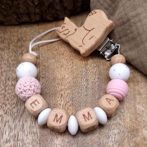 Personalized Baby Pacifier Clip Custom Name Dummy Chain Eco-Friendly Wood & Silicone Name Clip