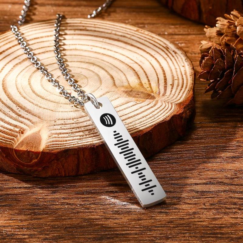 Personalized Bar Necklace Spotify Code Necklace Custom Music Spotify Scan Code Stainless Steel Necklace