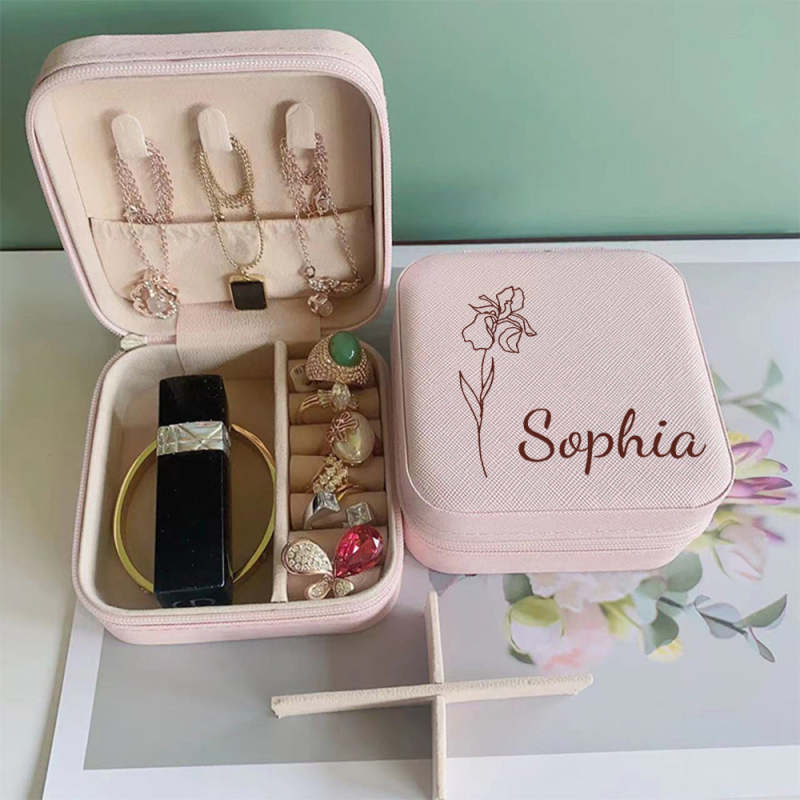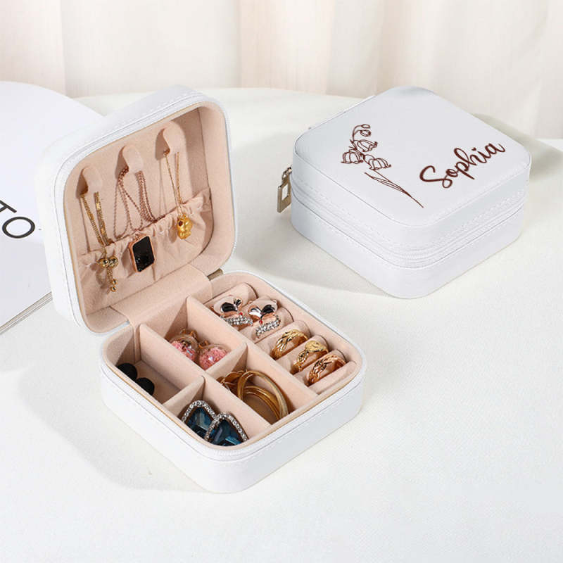 Personalized Birth Flower Jewelry Box Custom Jewelry Organizer Storage Gift for Her